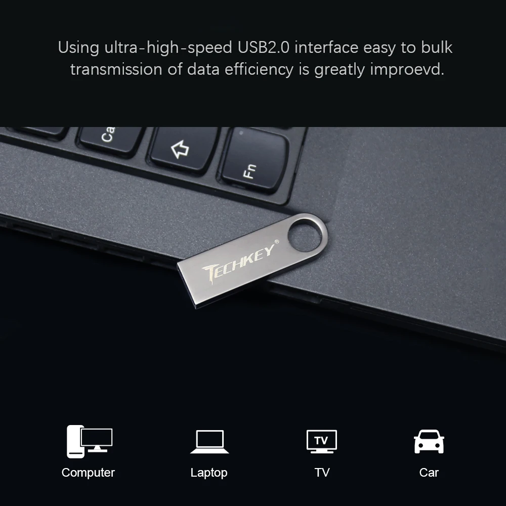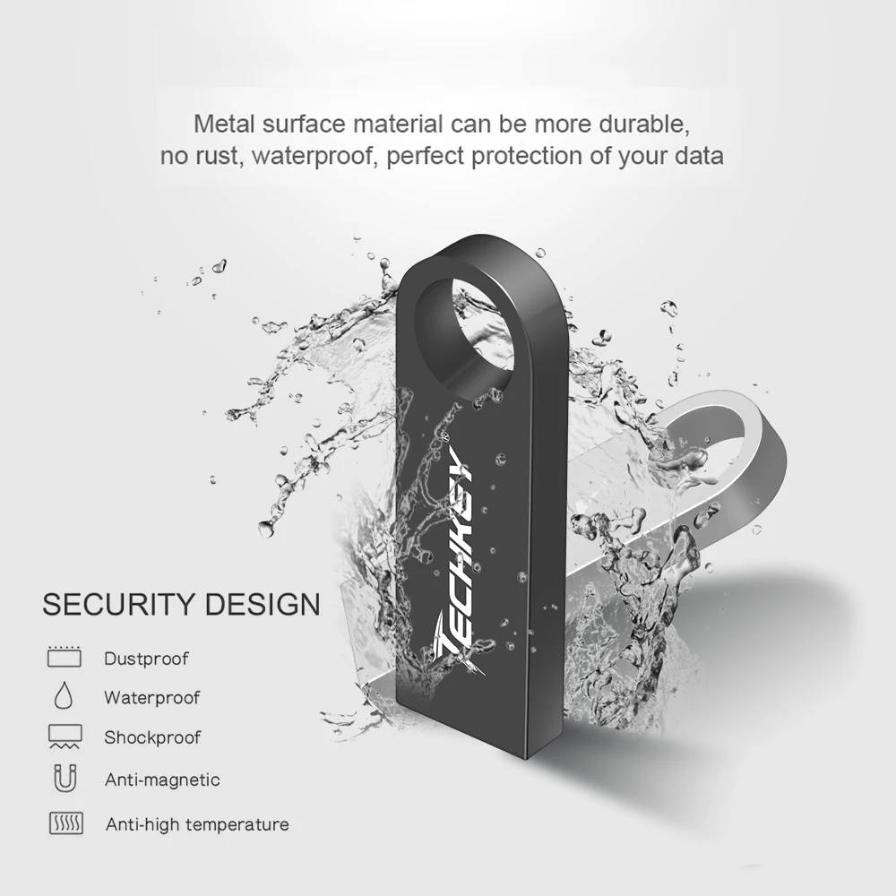 Usb флеш-накопитель TECHKEY, водонепроницаемый металлический серебристый флеш-накопитель на 8 ГБ, 16 ГБ, 64 ГБ, 128 ГБ, флеш-карта, u-диск в подарок