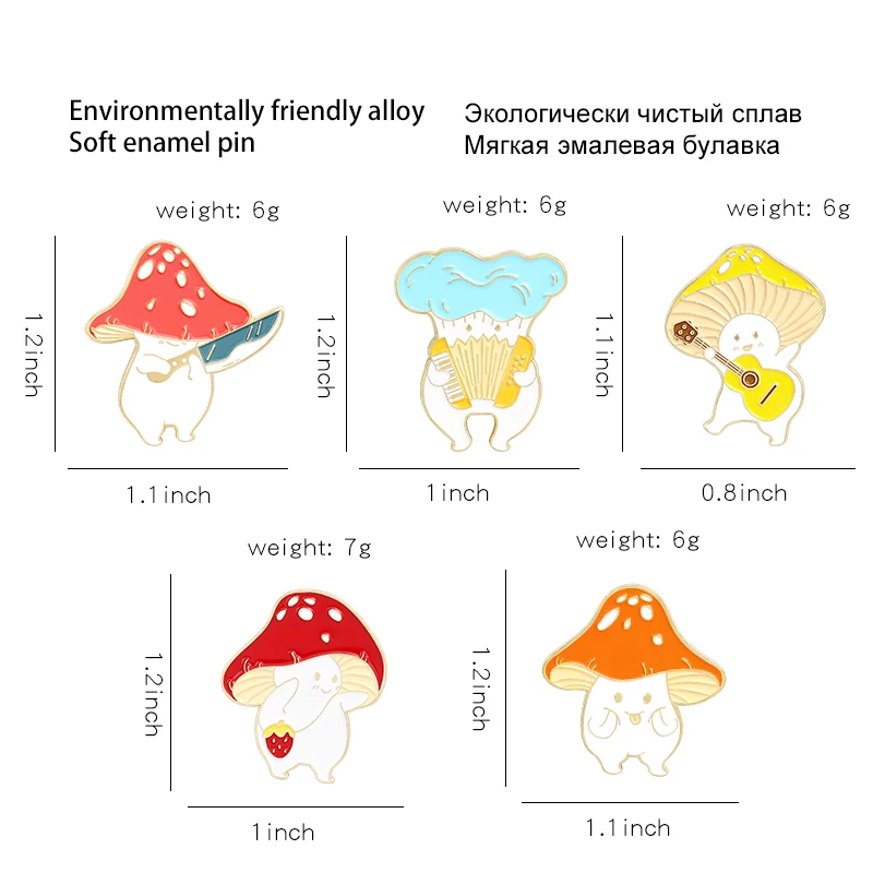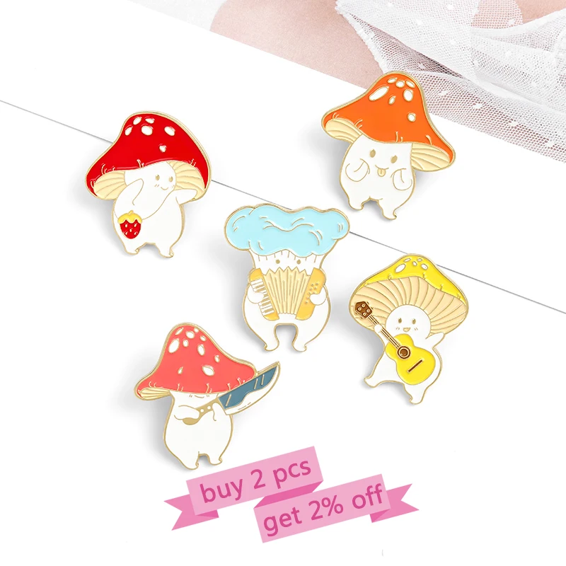 Брошь аккордеон в виде гриба, с эмалью, забавная, мультяшная, симпатичный значок