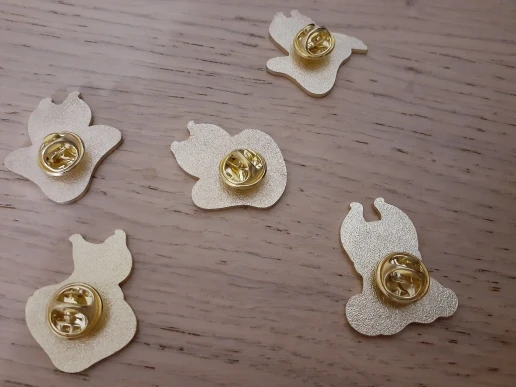 Качественная эмаль, берите не пожалеете. Выглядит хорошо. Сзади иголка с зажимом. Не булавка