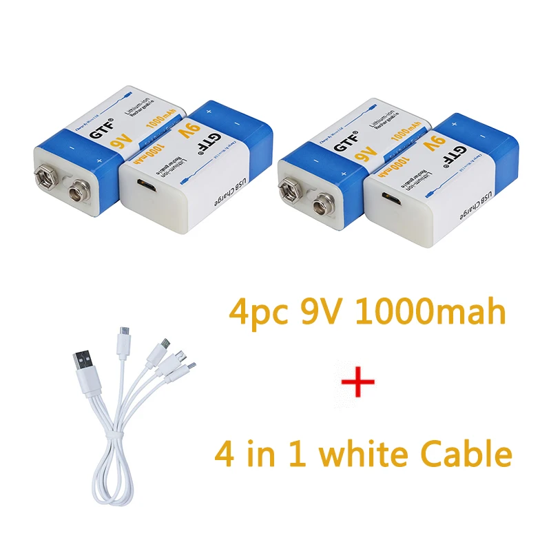 Перезаряжаемый литий-ионный аккумулятор micro usb 9 в, 4 шт., 1000 ...
