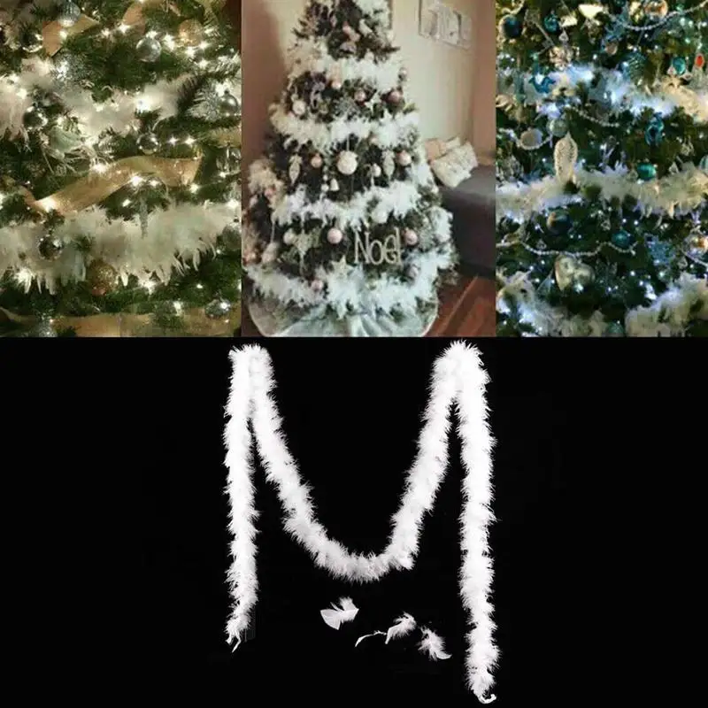 Рождественская елка, белая полоска из натурального пера, 2 м, Рождественская лента, гирлянда вечерние, декор сделай сам, ремесло, свадебные принадлежности, аксессуары для девушек