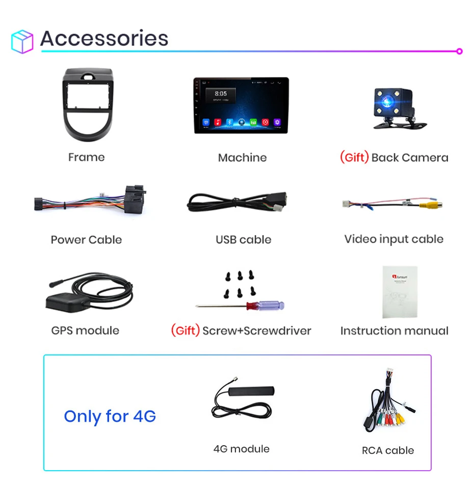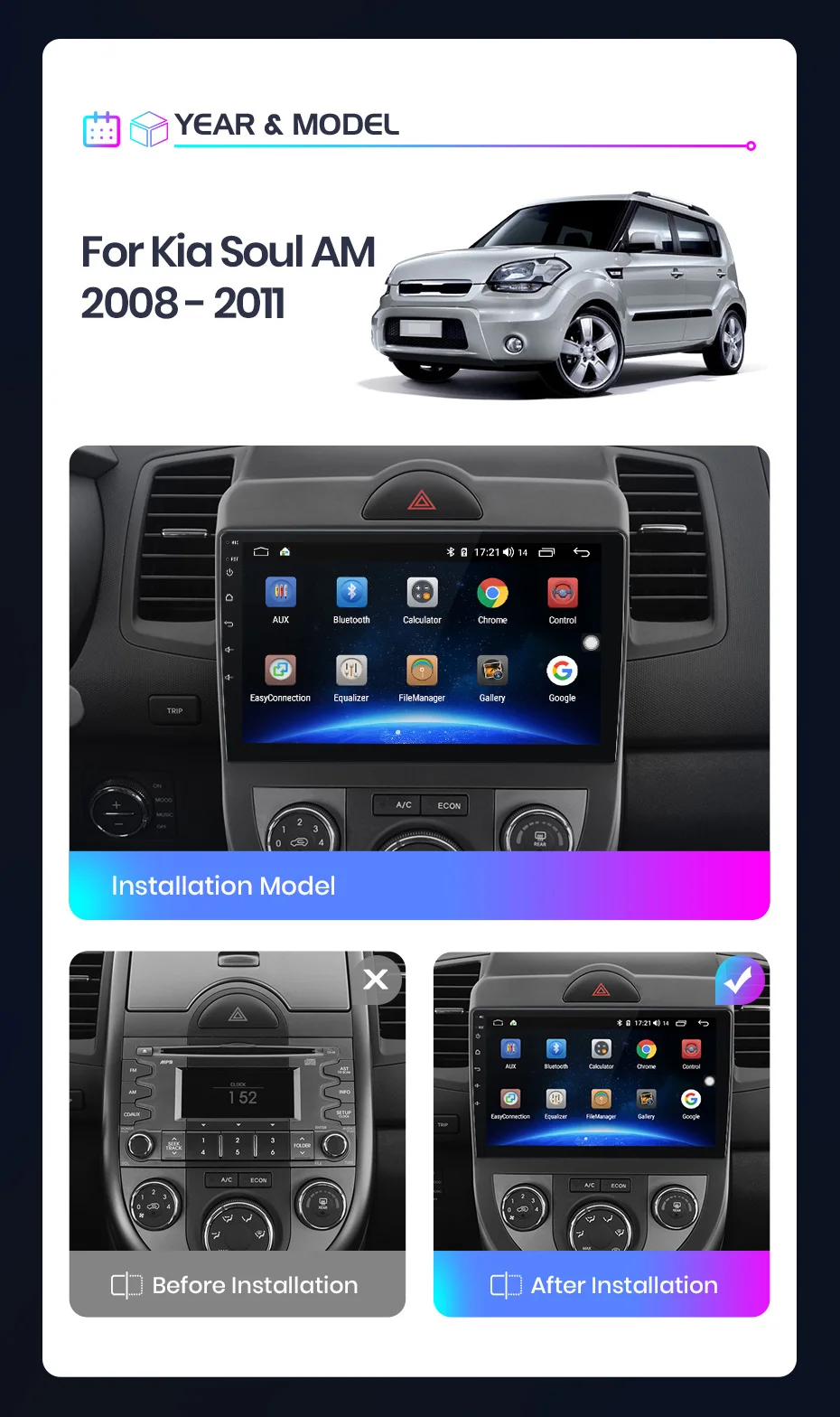 > Junsun V1 для Kia Soul AM 2008-2011 функция9-дюймовый емкостный экран 2.5D + четырехъядерный процессор 1,2 ГГц + DDR3 1 Гб (2 Гб опционально) флэш-память 16 Гб (32 Гб опционально) + Встроенный Wi-Fi (4 Гб сети опционально) + GPS-навигация (Обновление карты, поддержка только бренда Junsun) + Управление рулевым колесом + зеркальное отображение + Bluetooth + Встроенный микрофон + FM / AM + RDS (опционально) + Поддержка функции USB ADAS DVR + Функция Europe DAB + 1080P Vedio Play + HD 1024*600 + Система контроля давления в шинах> Язык экранного менюРусский, английский, испанский, итальянский, французский, немецкий, китайский, эстонский, польский, филиппинский, финский, корейский, голландский, хорватский, латышский, литовский, румынский, норвежский, португальский, японский, шведский, тайский, турецкий, украинский, венгерский.> 24 ч * 7 сервисная поддержкаВ Junsun Наша цель-продолжать усердно работать над созданием инновационного оборудования и программного обеспечения для автомобильного мультимедийного радио, которое дарит вам персональный контакт.Мы предоставляем бесплатные обновления прошивки, программного обеспечения, навигационных карт GPS.