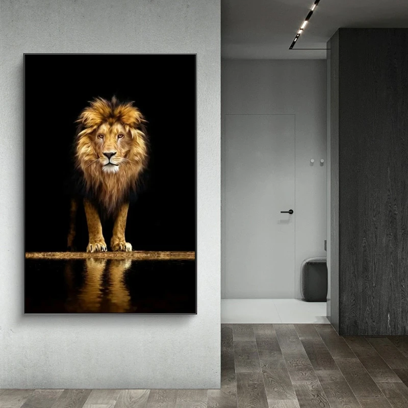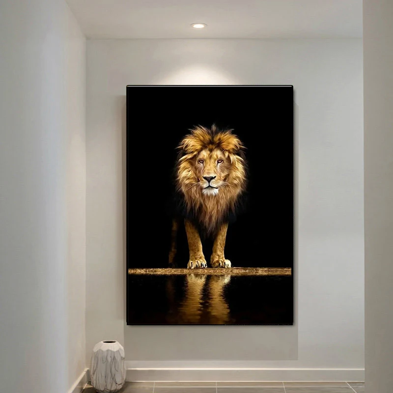 Картина на холсте Лев в темноте, постеры и принты с Африканским львом, настенные картины куадроса для гостиной, домашний декор без рамки