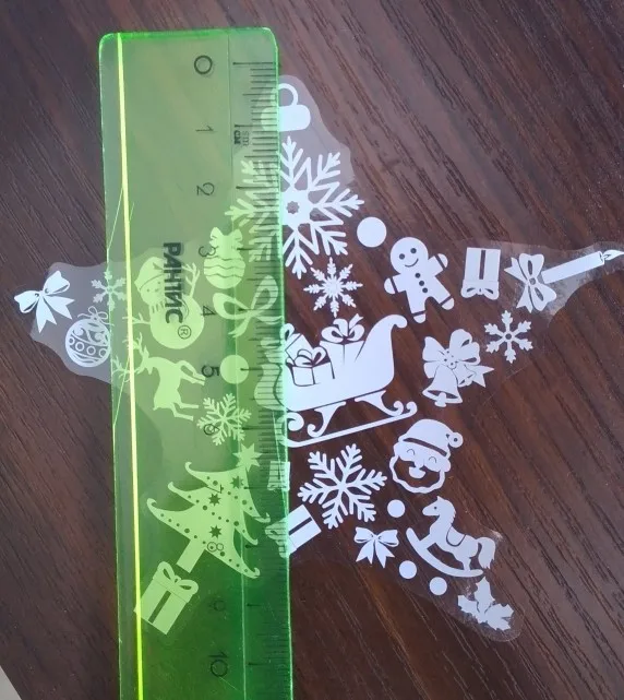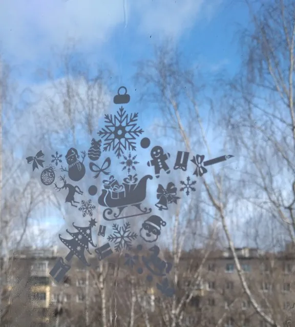 Очень позитивный эльф. Виден на окне хорошо и со стороны улицы. Наклейки статические. Многоразовые. Без липкого слоя держатся на окне, зеркале и холодильнике. Думаю, если смочить водой, то и на дереве будут держаться. Надо очень аккуратно их снимать с основы, тогда будут служить не один год. Посылка не отслеживалась. Шла меньше месяца. Всё целое. Спасибо продавцу. Рекомендую и товар и продавца.