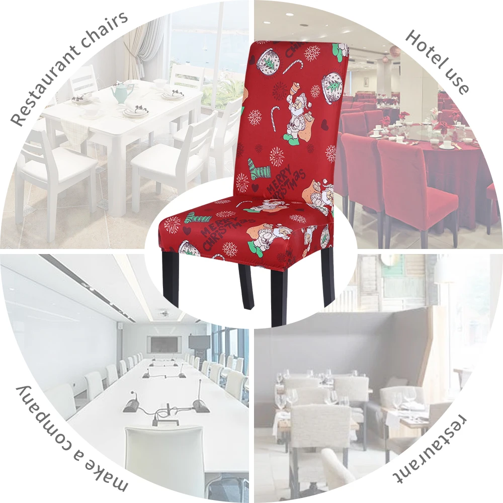 Чехол на стул с рождественским принтом, эластичный чехол из спандек...