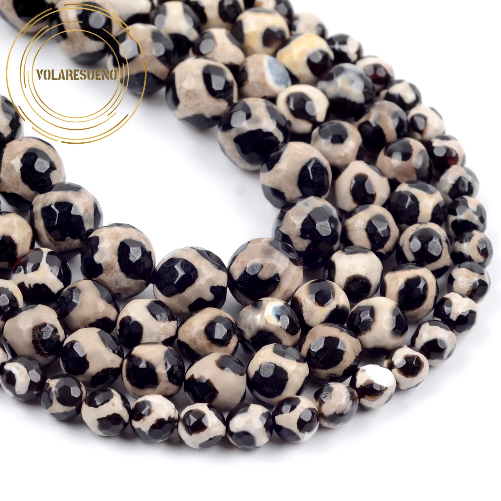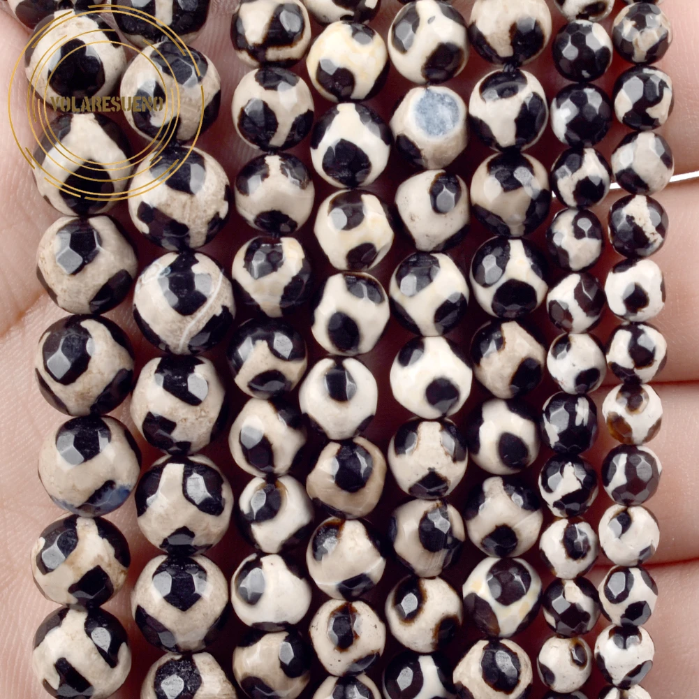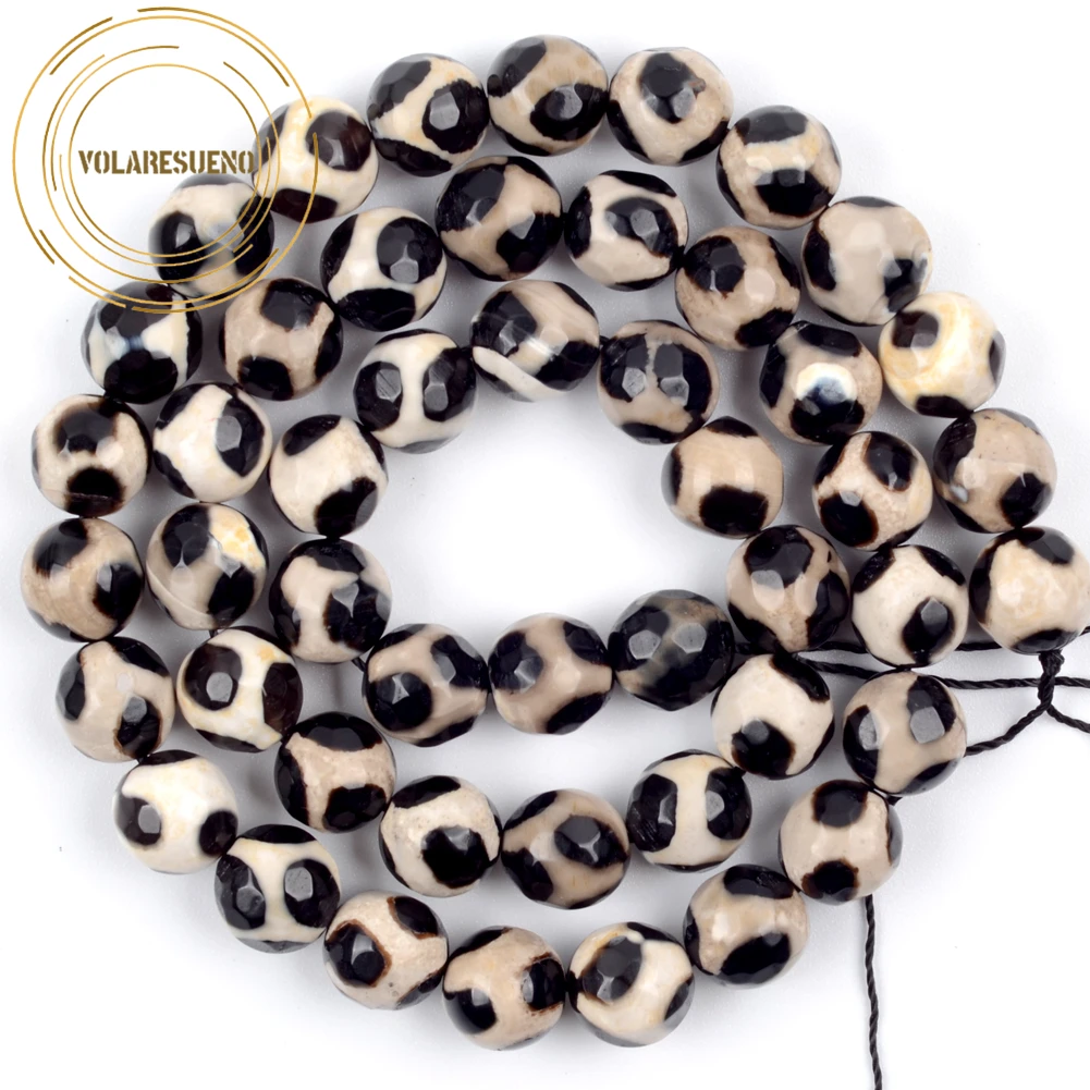 Оптовая продажа с фабрики Природный три оттенка тибетские бусины дзи 6810 мм Круглые граненые каменные бусины-разделители для самостоятельного изготовления ювелирных изделий браслет