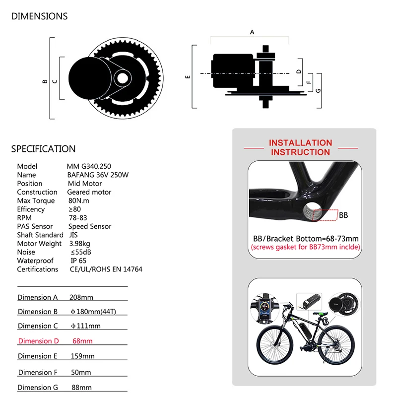 Фара для электровелосипеда в Bafang BBS02B е-байка 36В 250 Вт середине приводной двигатель 8fun велосипедного электрического для е-байка Conversion Kit 68-73 мм мощный профессиональный устойчивый центральный двигатель