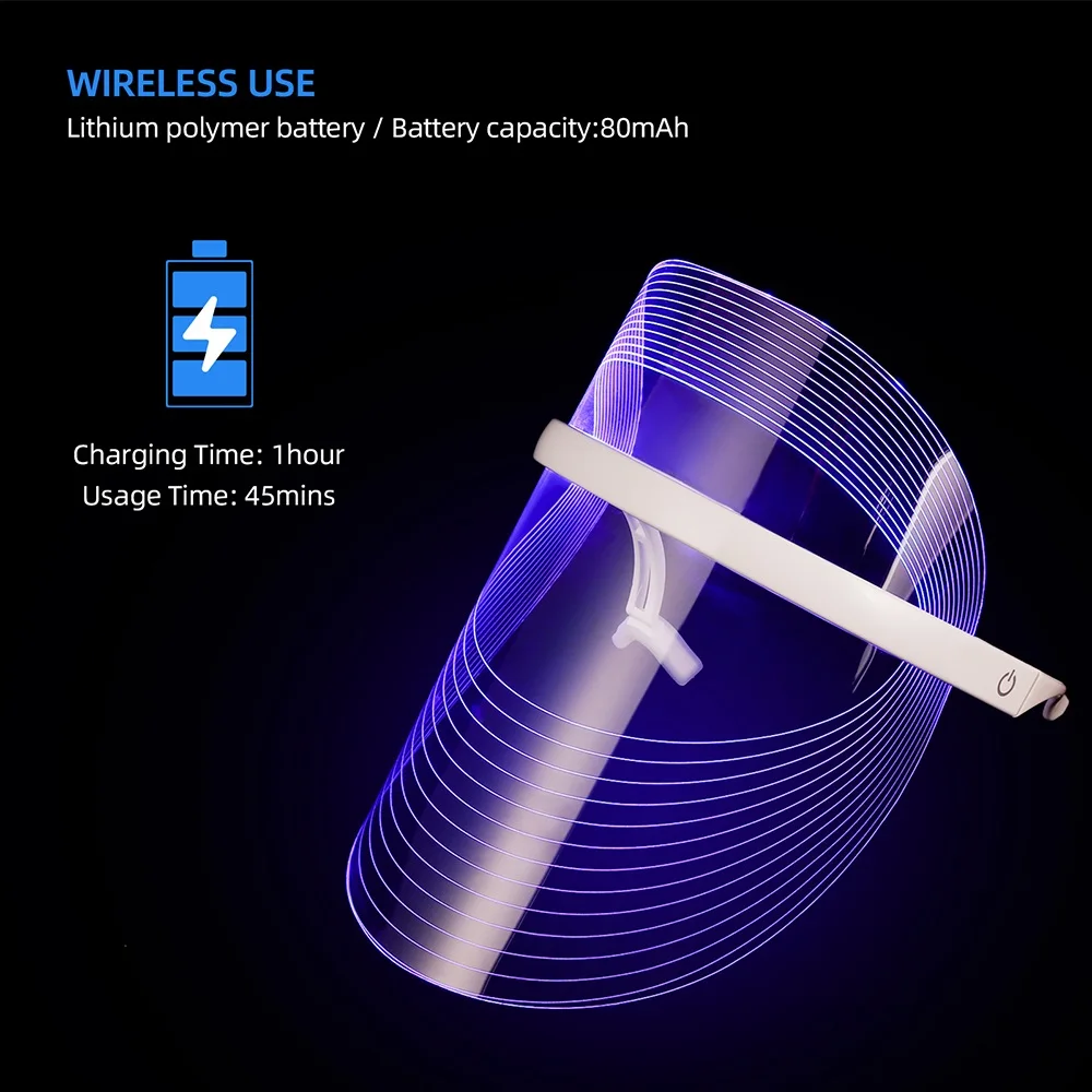 1. Идеально подходит для лица, с использованием технологии нано-складной светильник, чтобы помочь уменьшить поры, упругой кожи,2. Технология нано-складной светильник: это не прямой светильник. Он принимает дизайн нано-складной светильник, а цветной светильник нежный и не повреждает глаза и не влияет на внешнюю линию зрения.3. Маска безопасна для кожи, оправа позволяет носить ее стабильно и комфортно.4. Спектроскопия с тяжелой длиной волны: спектр длин волн трех цветов играет важную роль.5. Слепой открытый сенсорный переключатель: Нет необходимости снимать крышку кнопки управления, выберите режим photon beauty