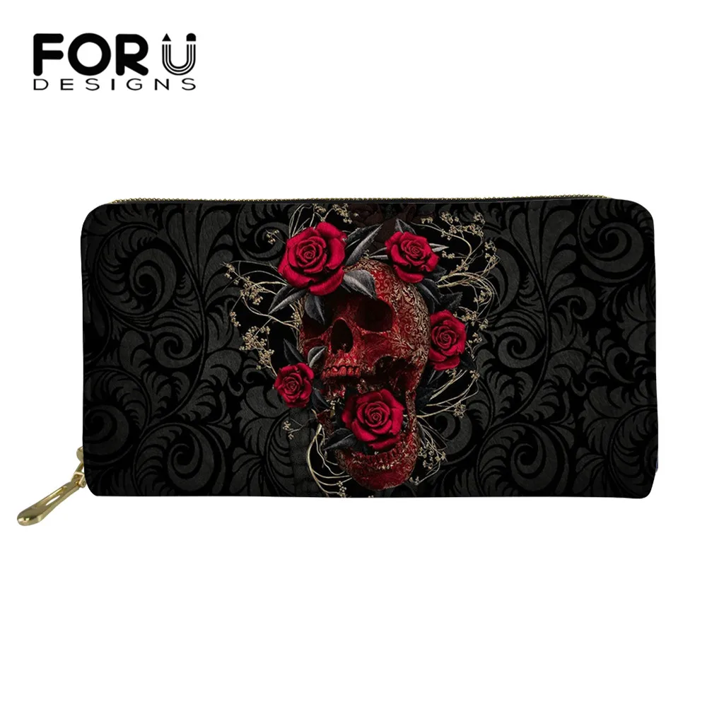 FORUDESIGNS Pu женский кошелек готический череп с цветочным принтом...