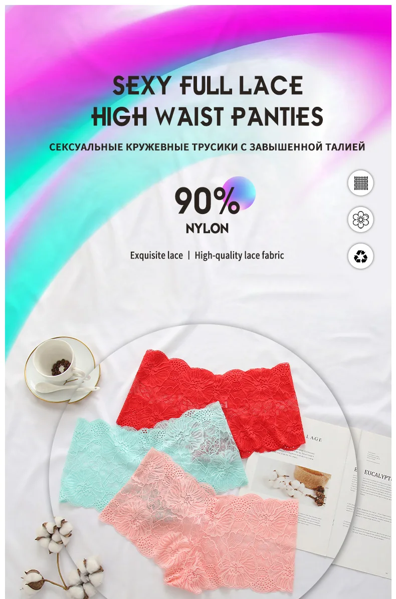 Трусы женские кружевные из дышащей ткани, 3 шт.