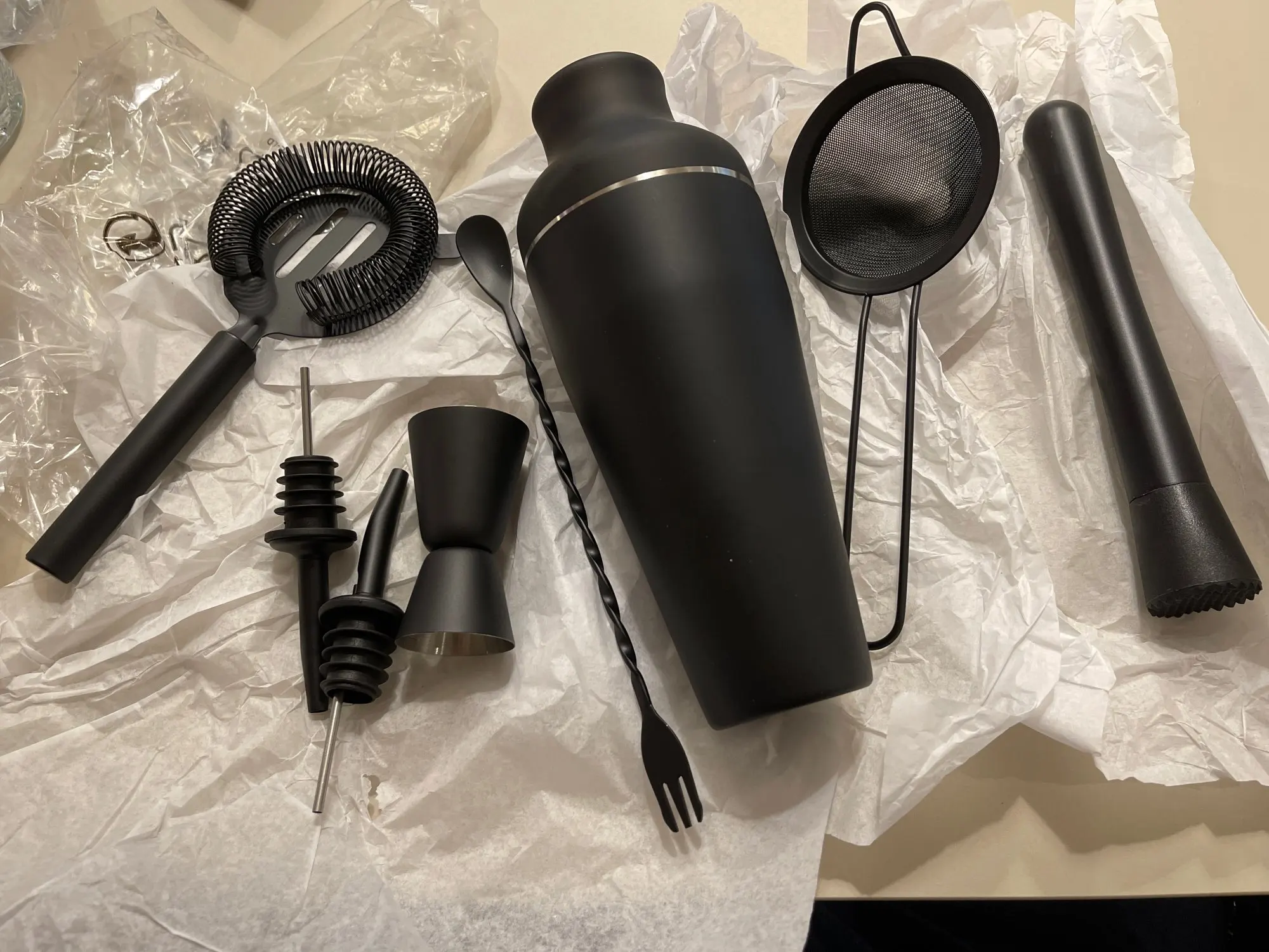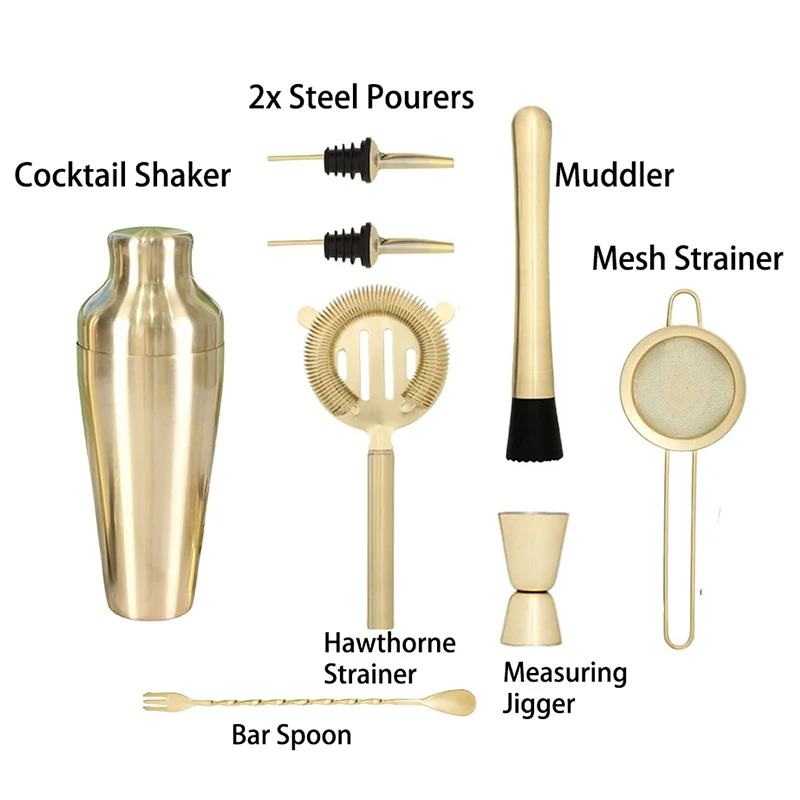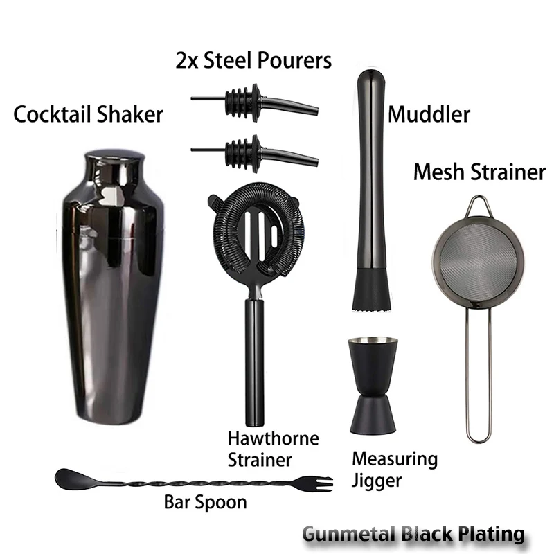 Полный набор-будьте уверены, что у вас есть все необходимое, чтобы приготовить все свои любимые коктейли с помощью мудлеров, двусторонней барной ложки/вилки, фильтра Hawthorne, фильтра julep, 2 х наполнитель и двухсторонний 25 мл/50 мл мерный стаканчик