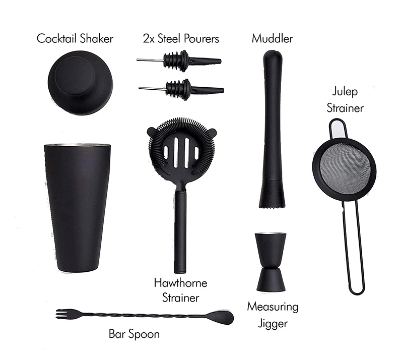 Образец-типичный для набора, который вы увидите профессиональными миксологами. Матовая черная отделка из нержавеющей стали станет идеальным элементом вечерние следующей встречи