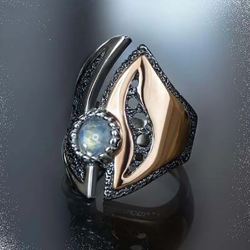 Женское кольцо с лунным камнем, с инкрустацией в виде двух цветов