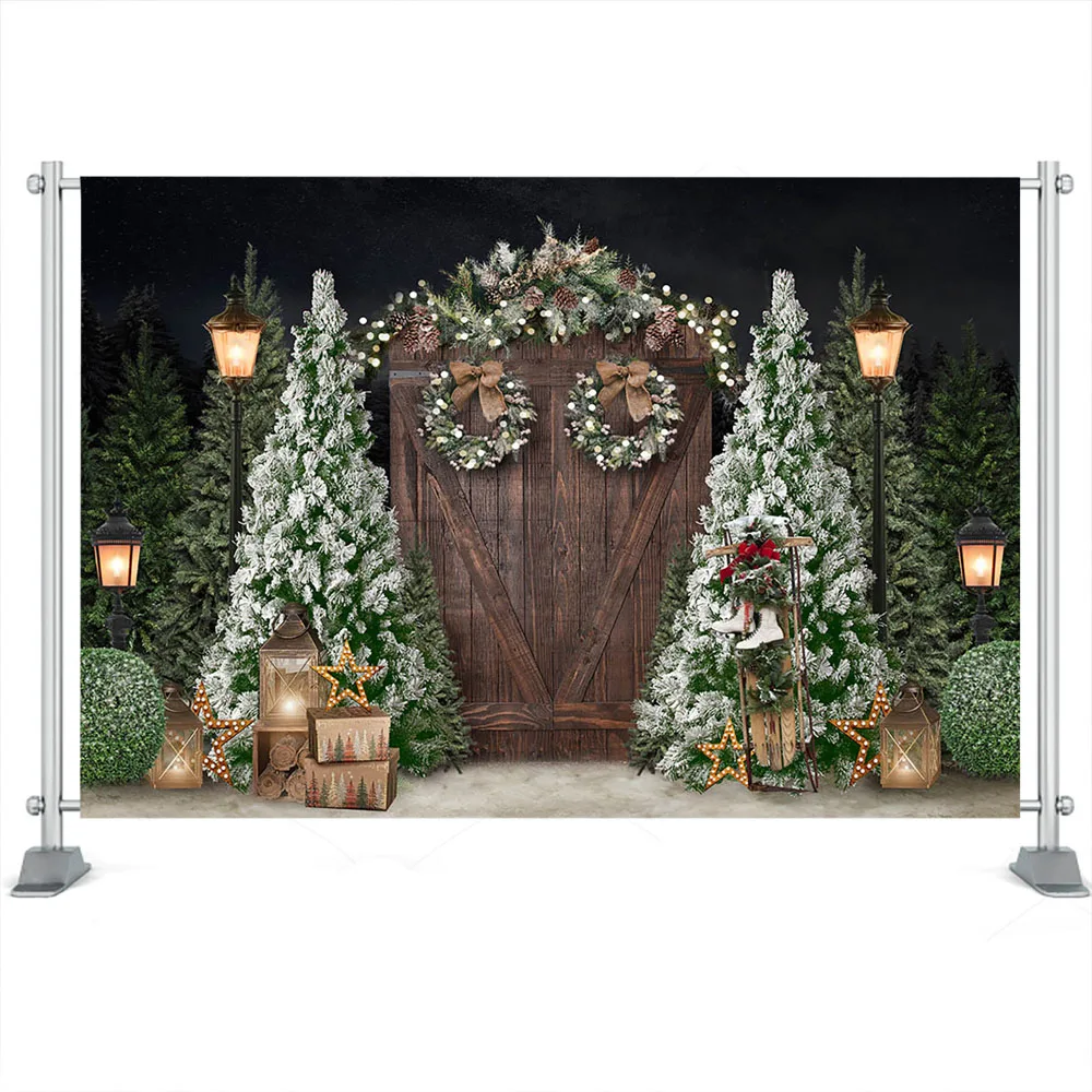 Рождественские ретро деревянные двери фотографии фоны снег рождественская елка Декор дети Вечеринка фотосессия фон фотостудия