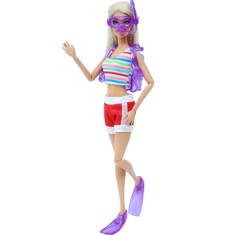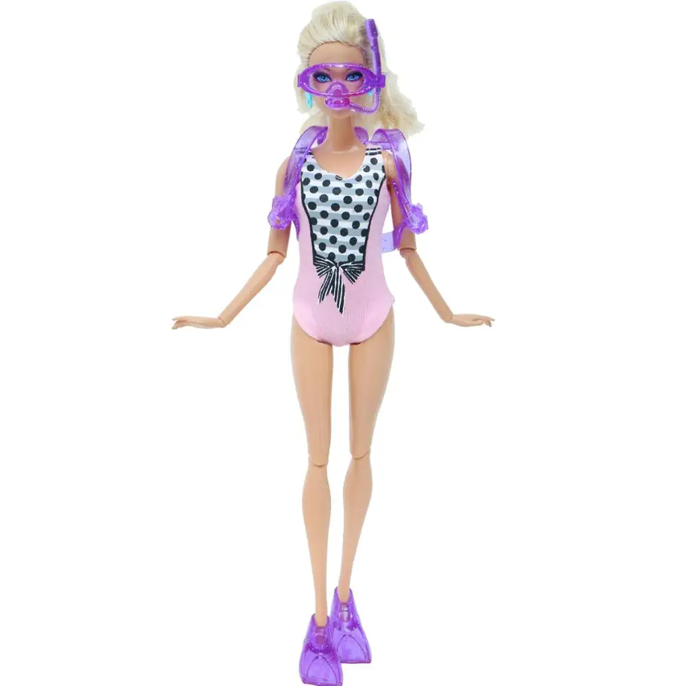 2 шт.компл. = 1 пластиковое оборудование для дайвинга очки обувь кислородный бак + 1 смешанный стиль купальник пляжная одежда для куклы Барби