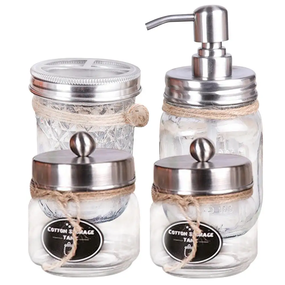 Стеклянный дозатор мыла с широким горлышком, 4 шт.компл.