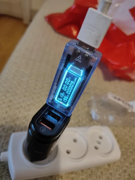 Выше мной уже все описано(черный зарядник, покупал вместе с этим), все работает, по наминалу не скажу, чего и сколько выдает, но работает и свою функцию выполняет, покупал на подарки к Новому Году, мелочь, а приятно.