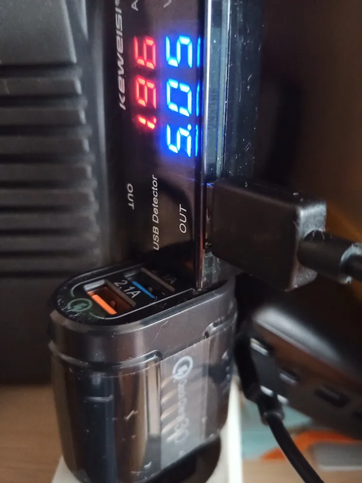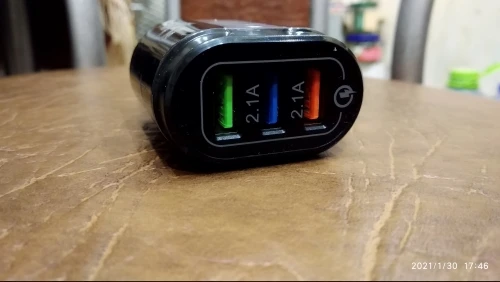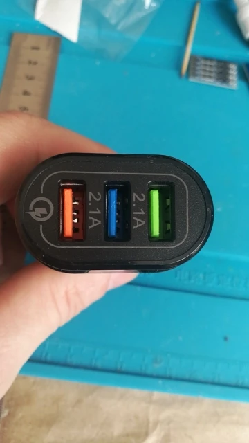 Во первых описание в магазине отличается от того , что этот жулик присылает. На витрине другой адаптер. На нём указано, 12 V 1.5 A.На этом только 5 V , 3.5 A.На портах 2.1 А , что соответствует действительности. При токе более 2.14 А напряжение резко падает. Так что обычный дешманский адаптер за свои деньги.
