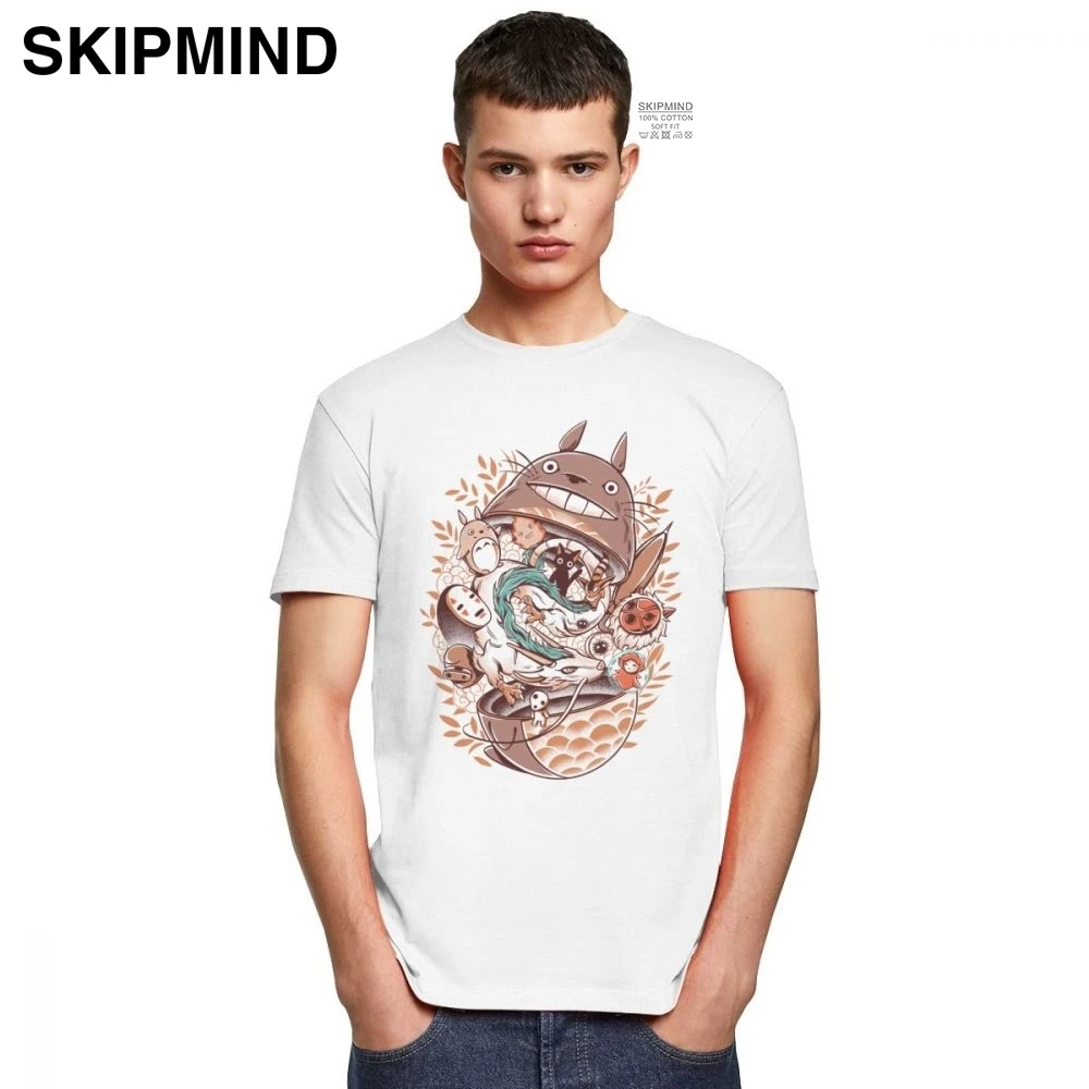 Забавный с изображением героя мультфильма Мой сосед футболка с изображением Тоторо Мужская футболка с коротким рукавом Studio Ghibli Унесенные призраками Хаяо миядзяки; Летняя футболка для девочек 100% хлопковая футболка