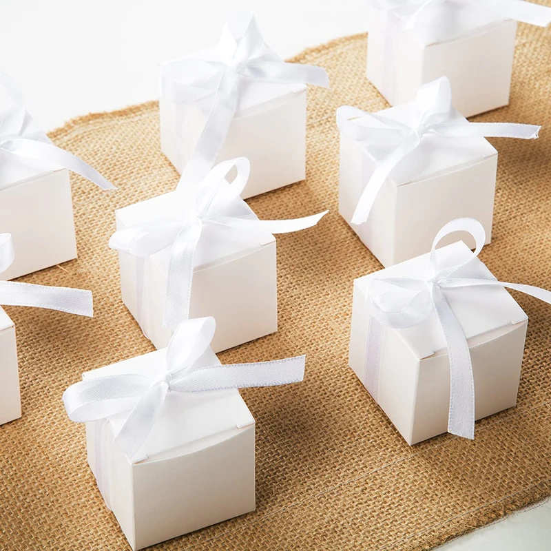 100 шт., Подарочная коробка для сладостей с белой лентой, шоколадный подарок, конфеты шт.