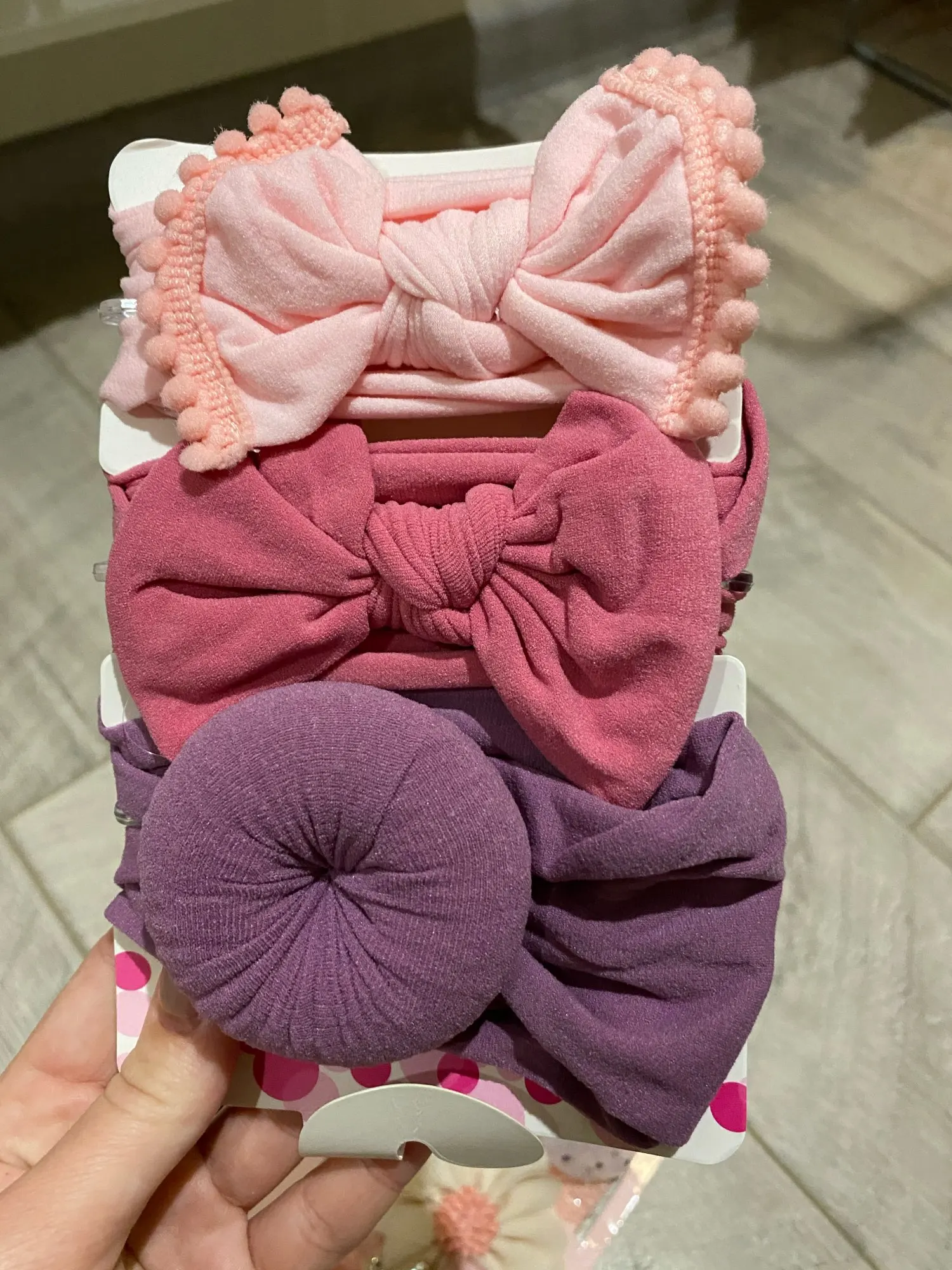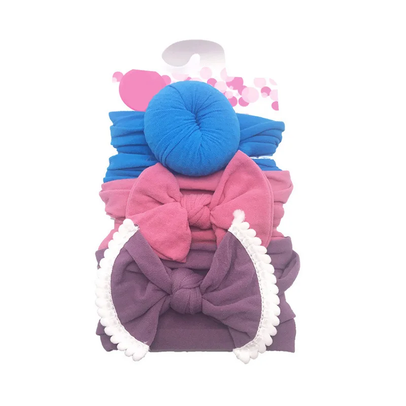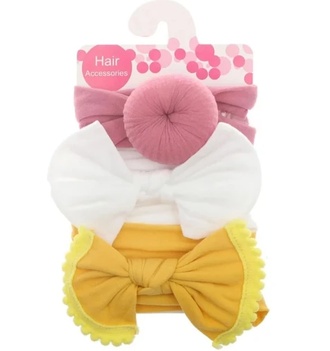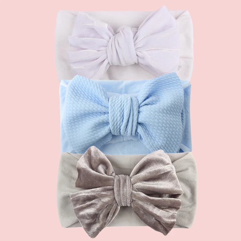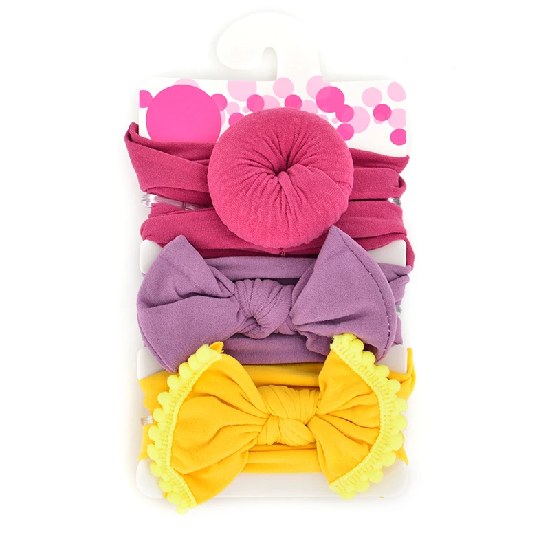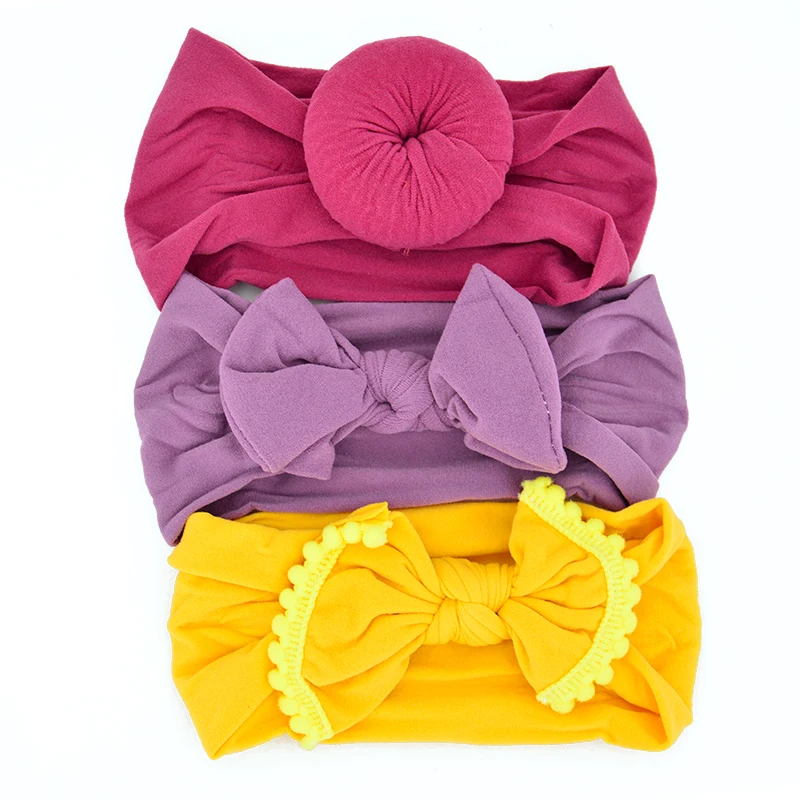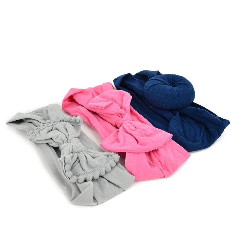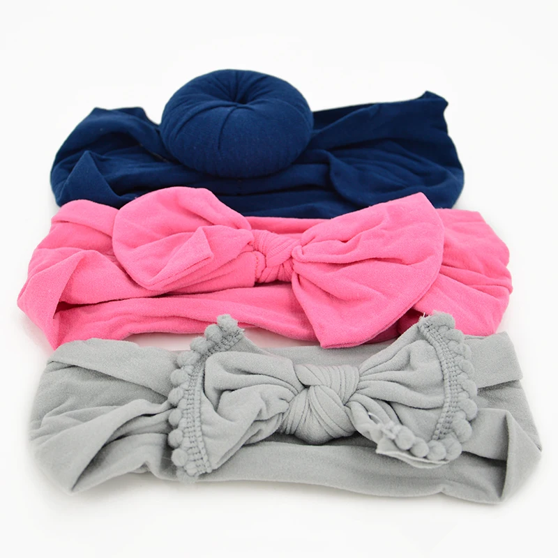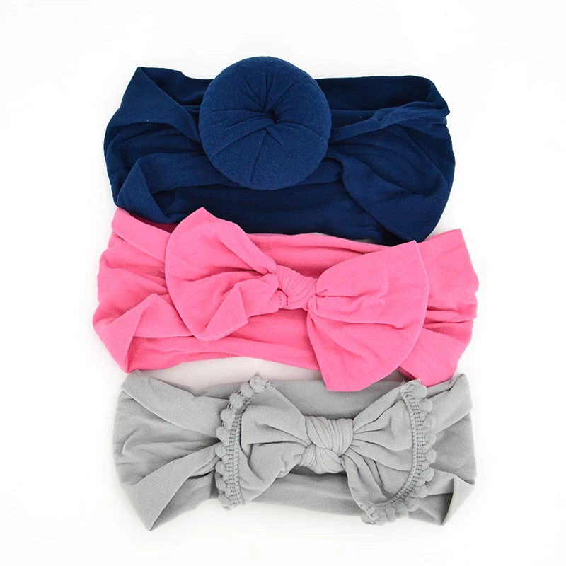 Однотонная мягкая нейлоновая эластичная Детская повязка на голову с бантом, повязка на голову для новорожденных девочек, аксессуары для волос, повязка на голову для девочек, 3 шт.компл.