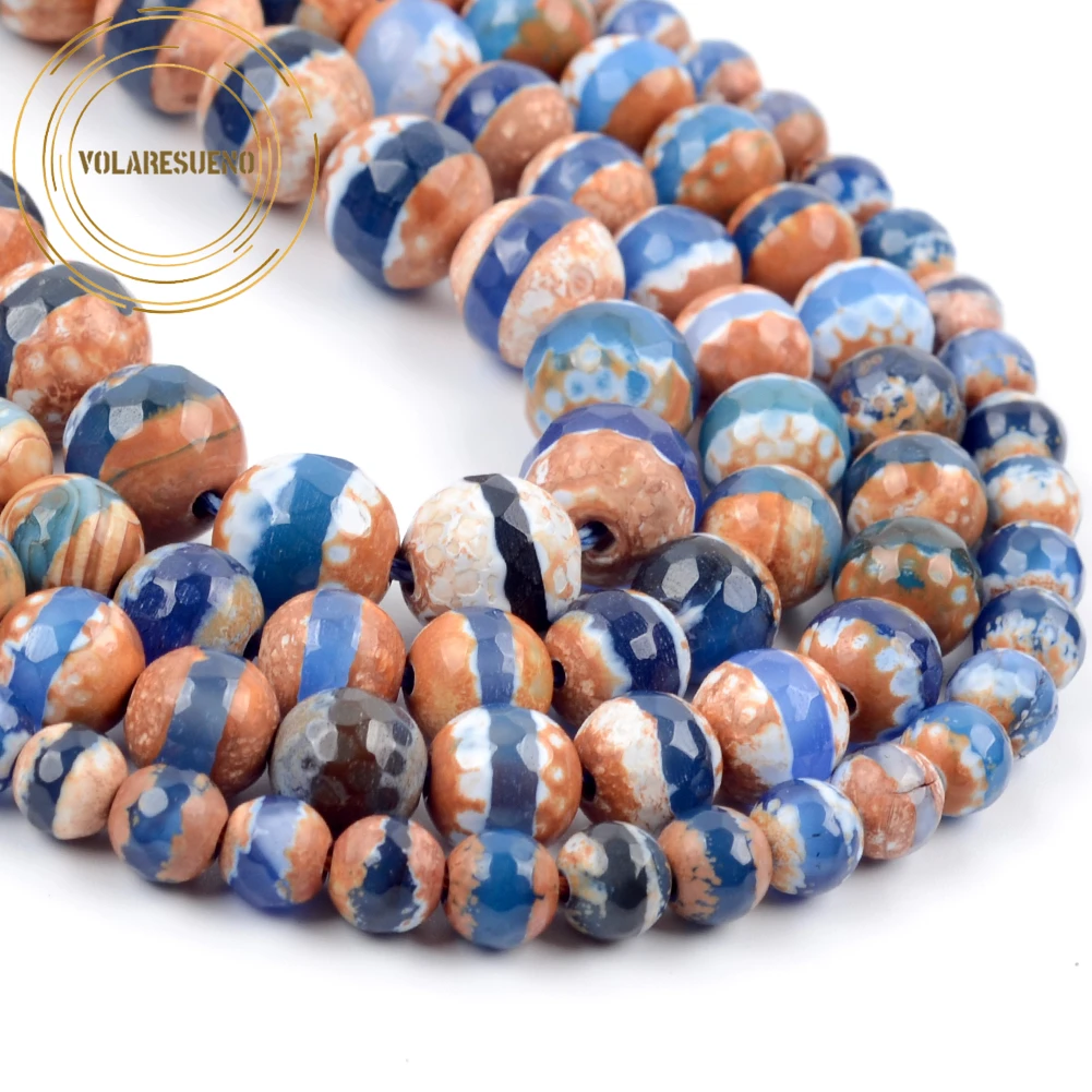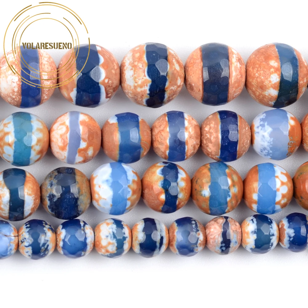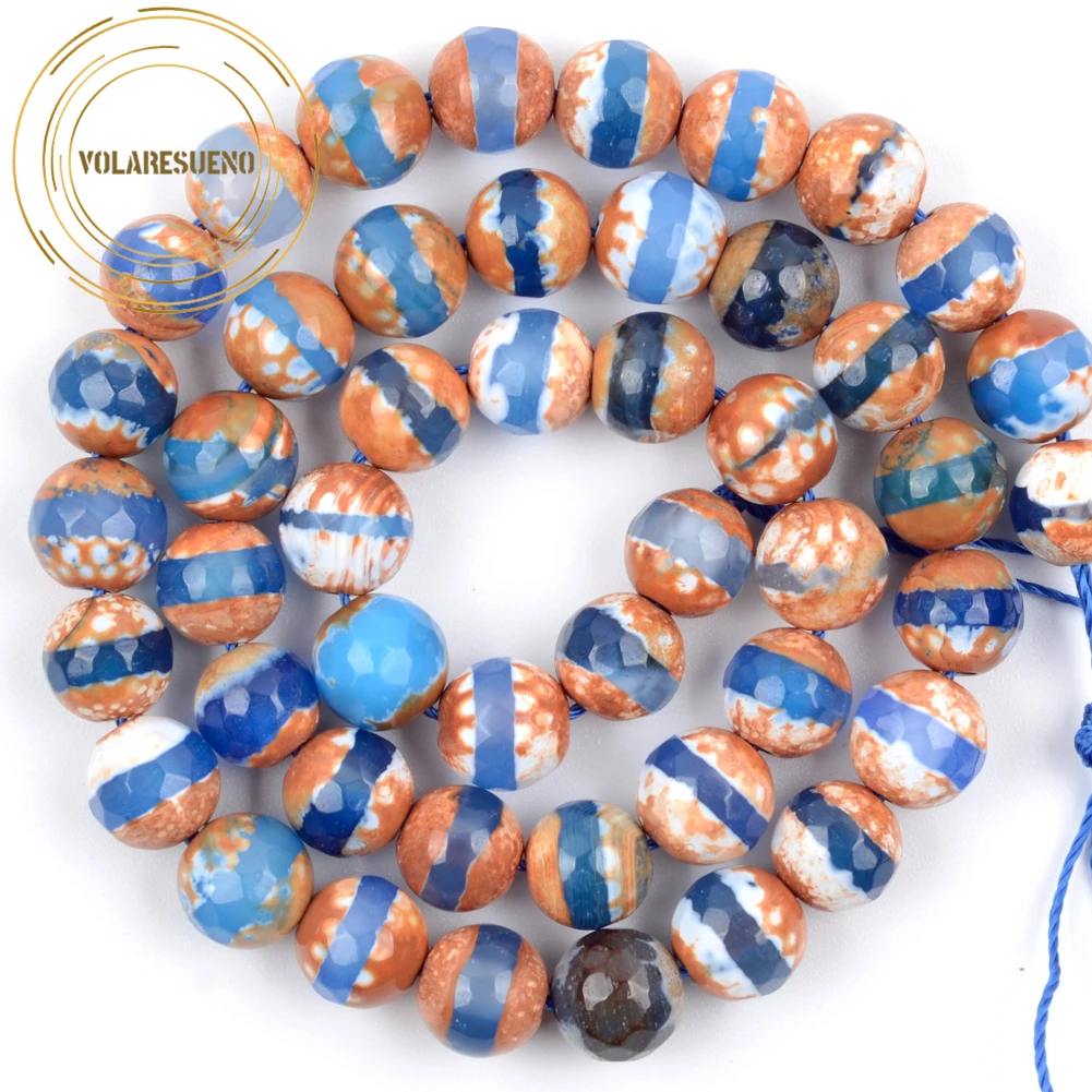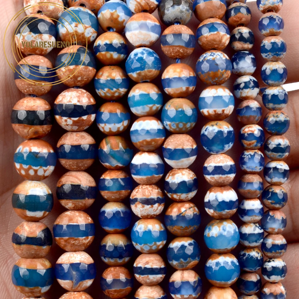 Оптовая продажа натуральный синий ювелирные изделия тибетский Агаты бусины, диаметр -- 6810 мм Круглые граненые свободные каменные бусины-разделители для самостоятельного изготовления ювелирных изделий браслет
