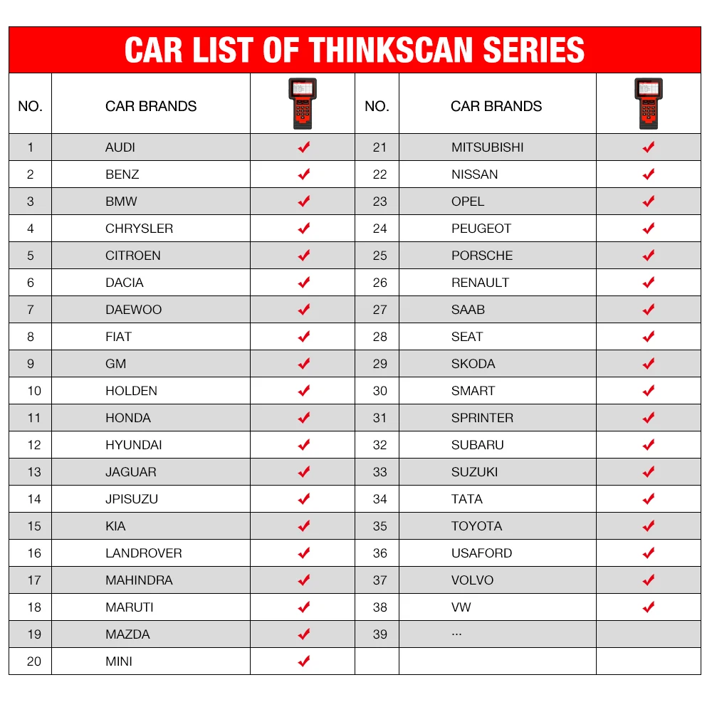 Thinkscan 609 Support CarMore than 36 kinds of cars