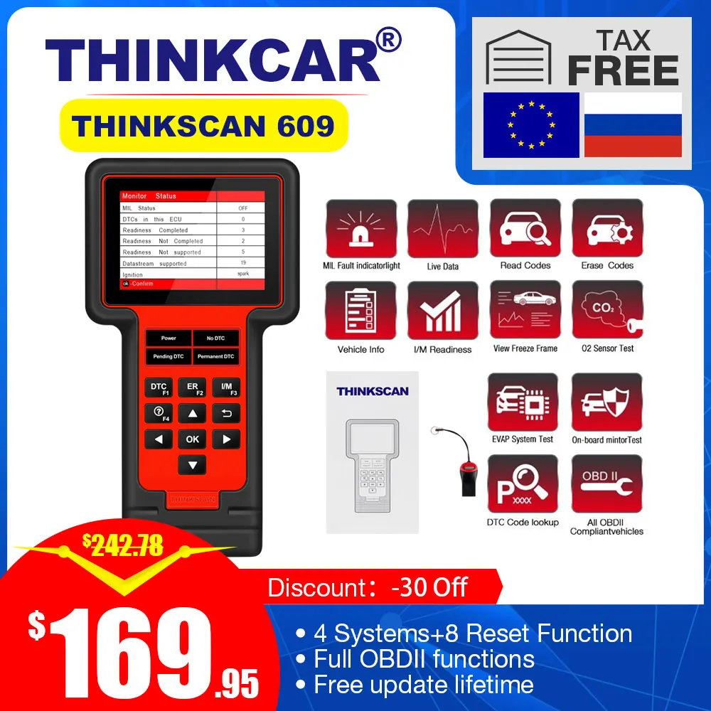 Диагностический сканер Thinkcar TS609 OBD2 для двигателя ABS SRS, д...