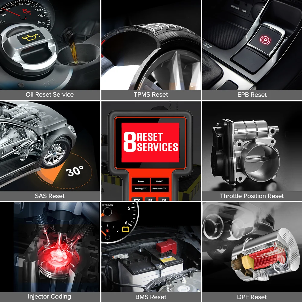 Сброс масляного света, сброс TPMS, сброс SAS, сброс EPB, переобучение электрической дроссельной заслонки, Кодирование инжектора, адаптация батареи и Сброс DPF