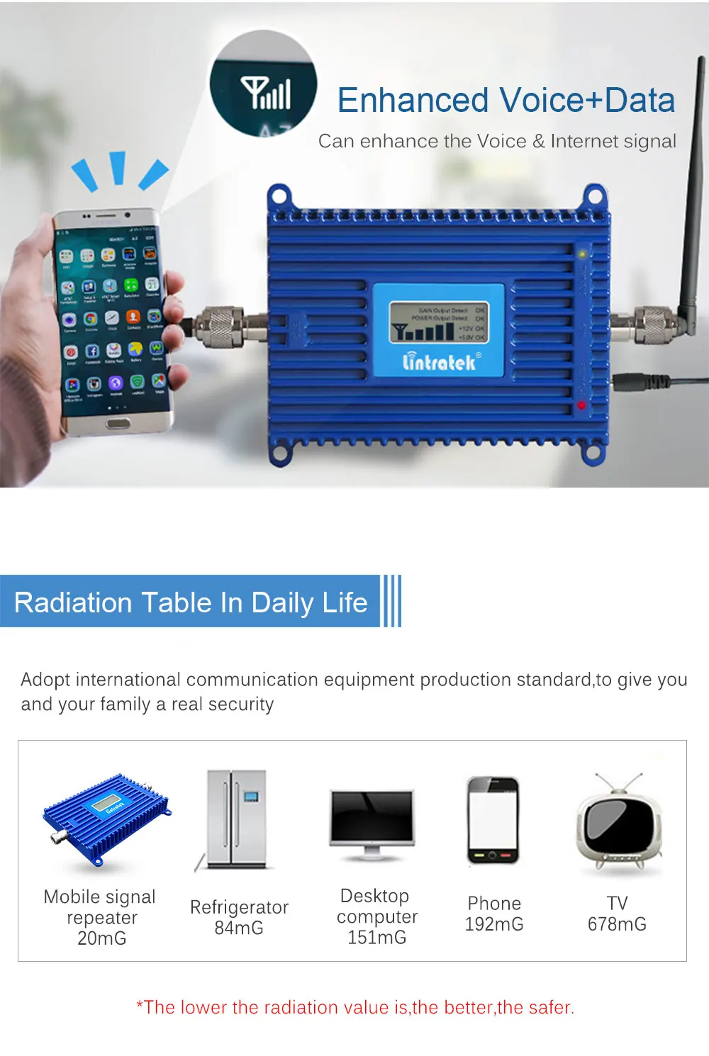 Повторитель сигнала Lintratek 3G, 70 дБ, CDMA, GSM, UMTS, 850 МГц, 850 МГц