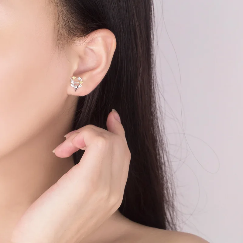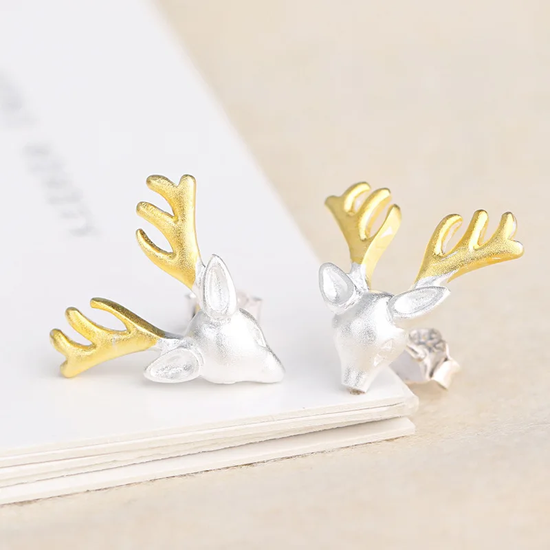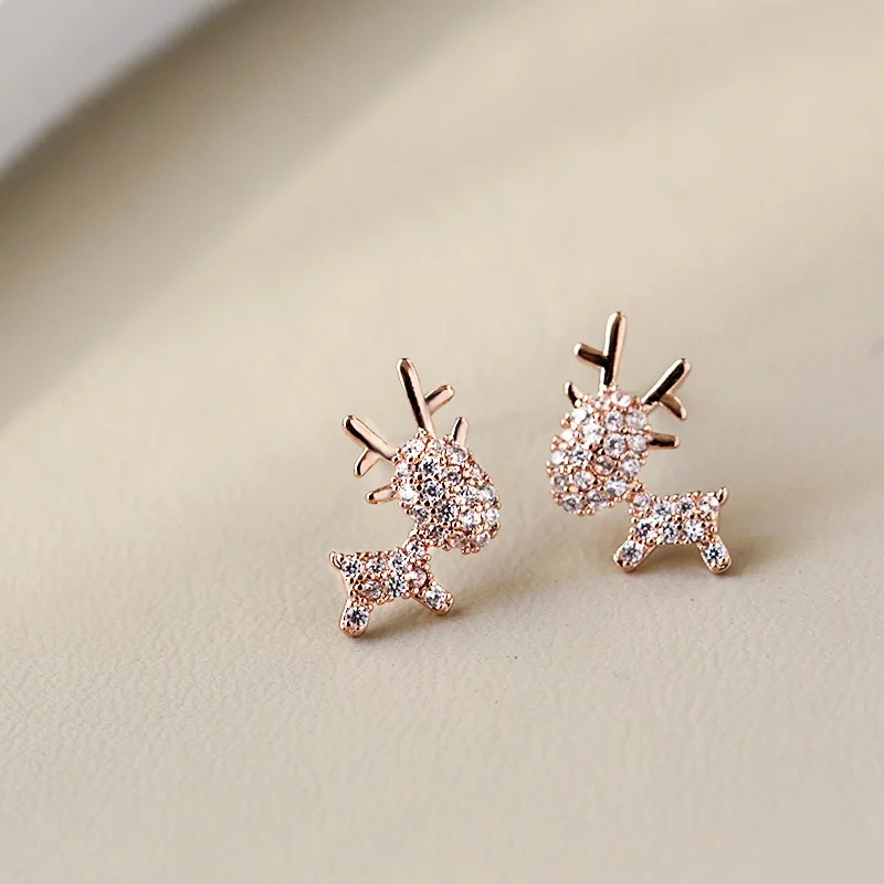 Рождественские серьги-гвоздики, стразы, снежинки, олени