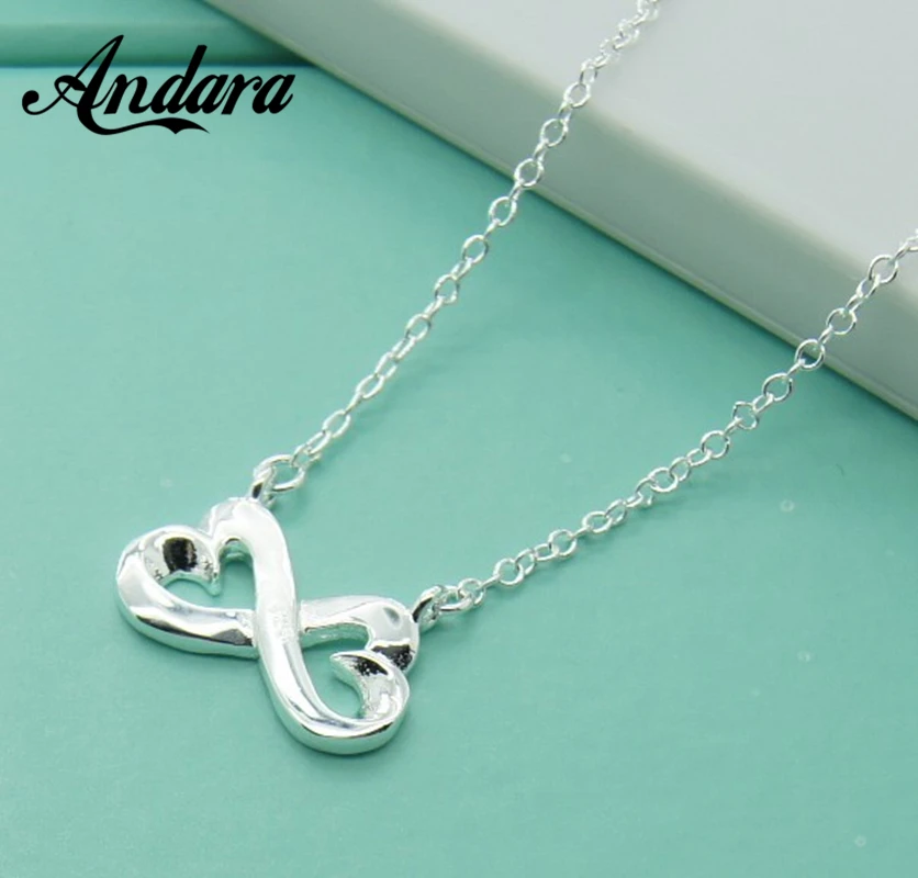 Новое Серебряное ожерелье 925 пробы, двойная любовь, кулон, ожерелье для женщин, ювелирные изделия, подарок
