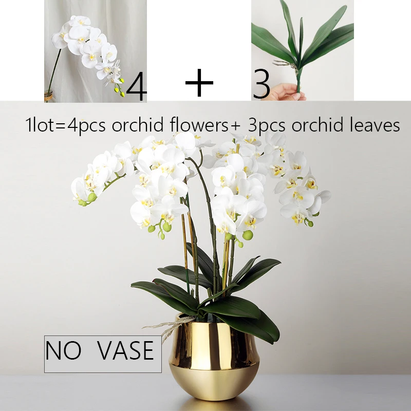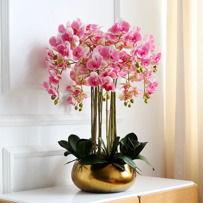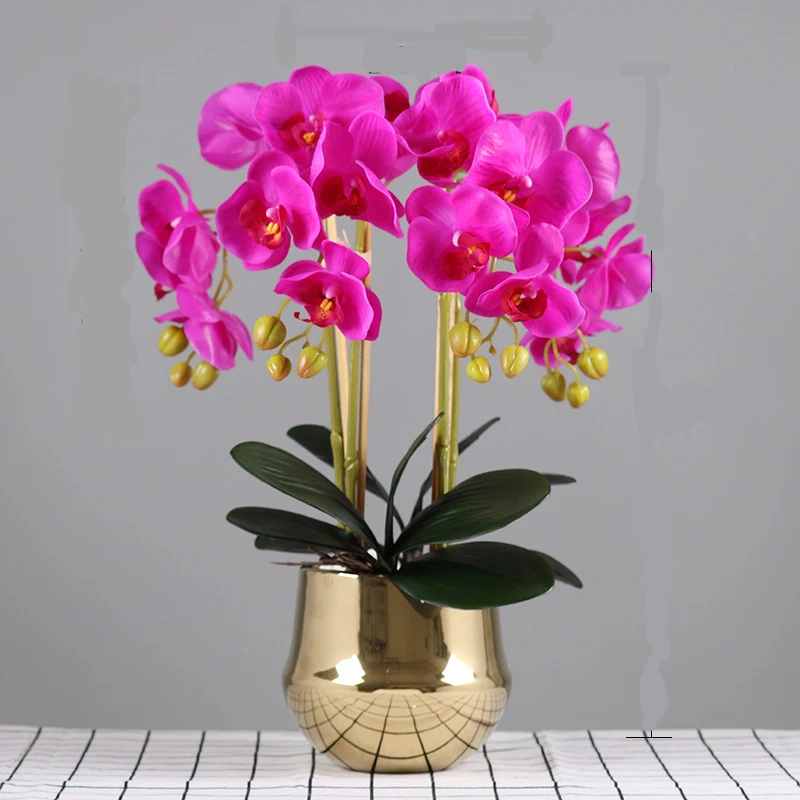 Большой искусственные цветы, орхидеи композиция полиуретан с эффектом реального прикосновения ручное украшение стола для дома высококачественный букет без вазы