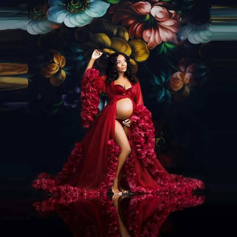 Высококачественный красивый тюлевый халат для беременных для фотосъ...