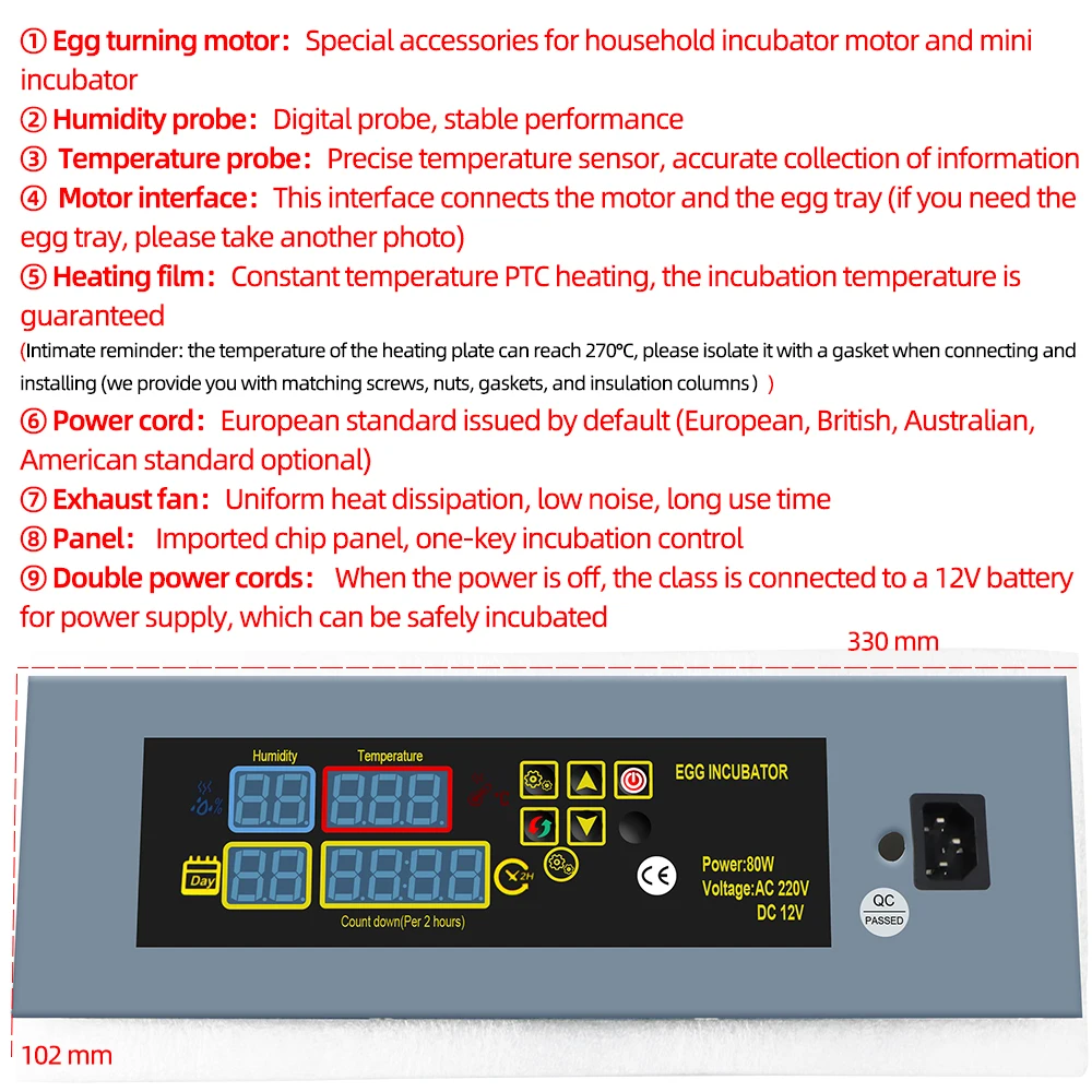 Это своего рода высококачественный инкубатор для яиц, принимает нагревательный лист PTC, автоматическую постоянную температуру, энергосбережение, дает вам стабильную инкубаторную температуру. Сложный датчик температуры, обеспечивает точность сбора информации. Оснащен вытяжным вентилятором, равномерным рассеиванием тепла, с низким уровнем шума и может обеспечить длительный срок службы. DIY Мини принадлежности для инкубаторов, подходит для акриловой доски, пластмассы, стекла, дерева, твердой доски и т. Д ..
