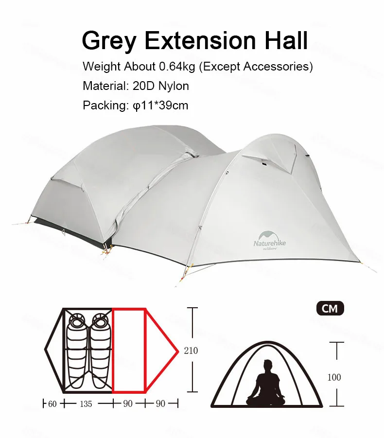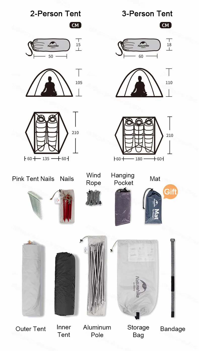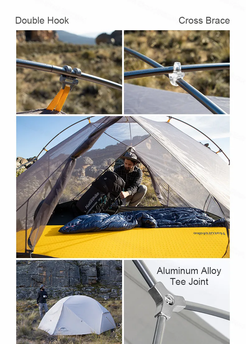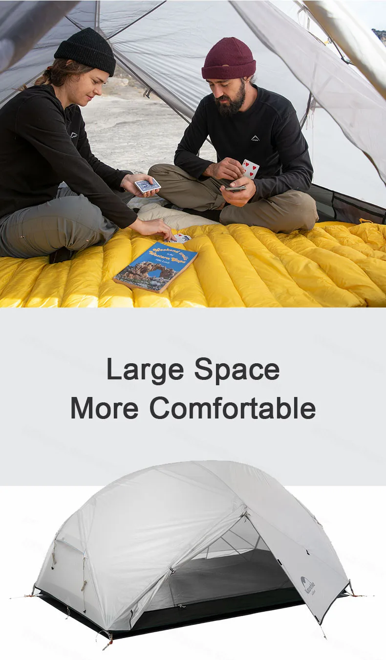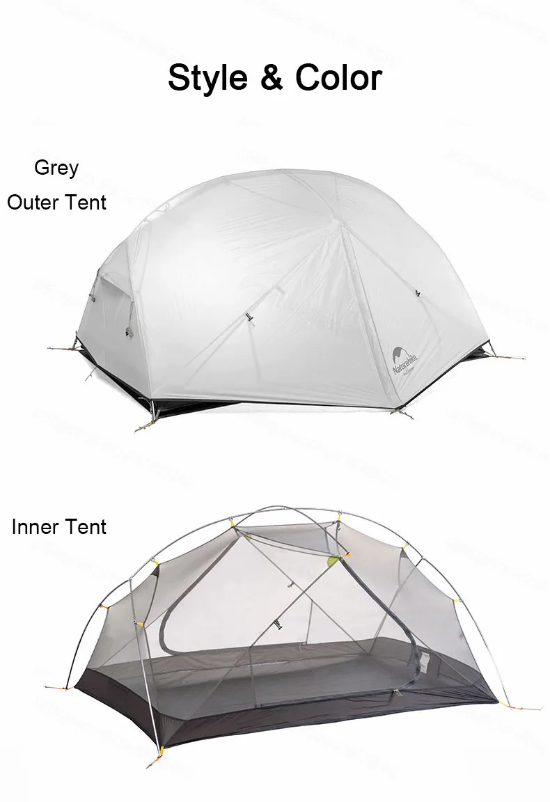 Палатка Naturehike Mongar туристическая на 2 человек, Ультралегкая двухслойная водонепроницаемая палатка 20D для кемпинга, Путешествий, Походов, снаряжение с ковриком NH17T006-T
