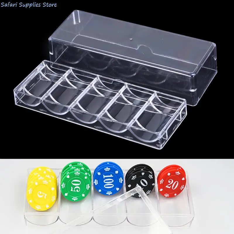 Набор покерных чипов, коробка акриловых чипов для покера, прозрачная коробка, лоток для игровых микросхем для казино, чехол с крышками, чипы для покера
