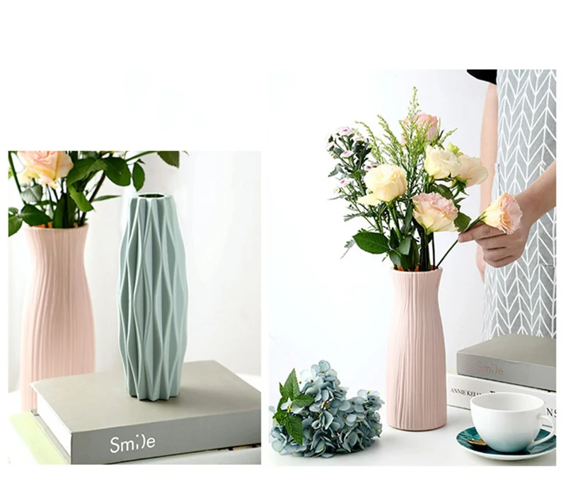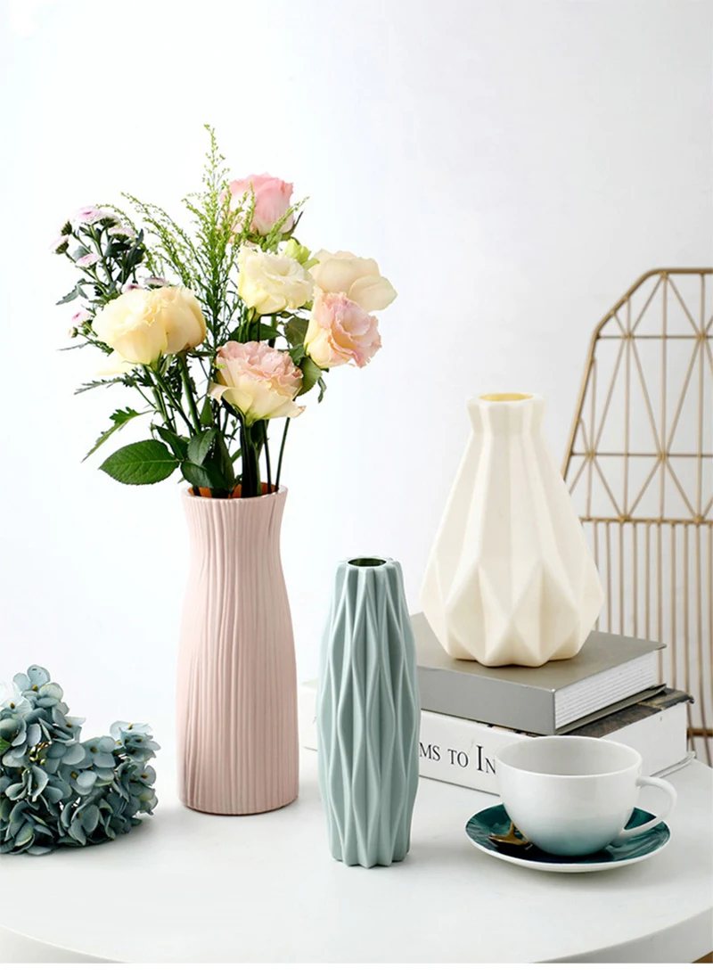 Пластиковая ваза для украшения дома, белая керамическая Цветочная горшка, искусственный цветочный горшок, скандинавский декоративный Свадебный обеденный стол для спальни
