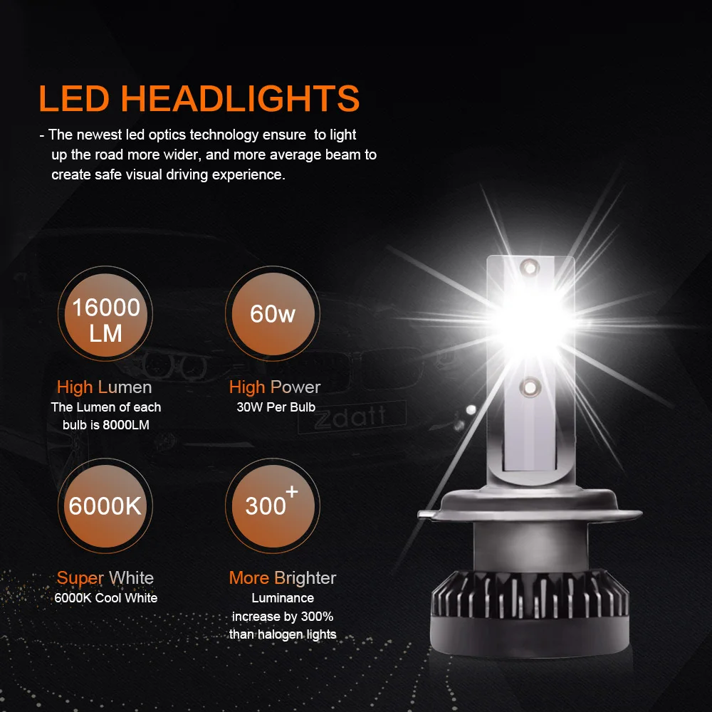 Zdatt автомобильные светильник H1 H8 H11 9005 HB3 9006 HB4 h4 led h7 светодиодные лампы головной лампочка 6000K 16000LM 60 Вт 12В противотуманный светильник s авто высокого Яркость лампа