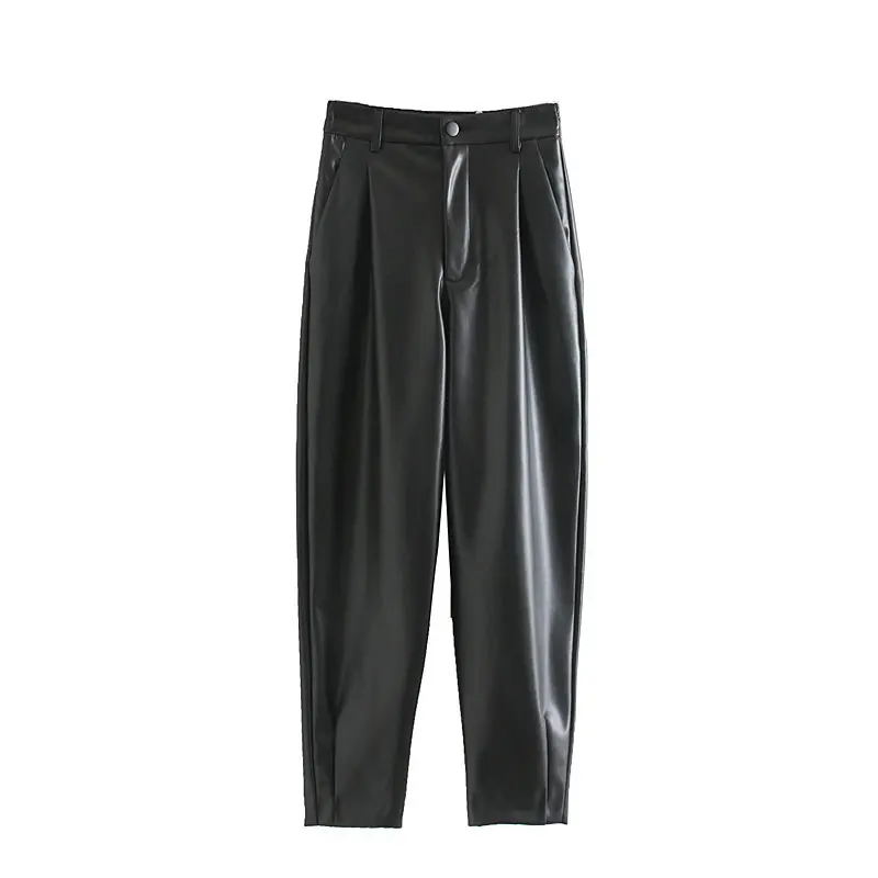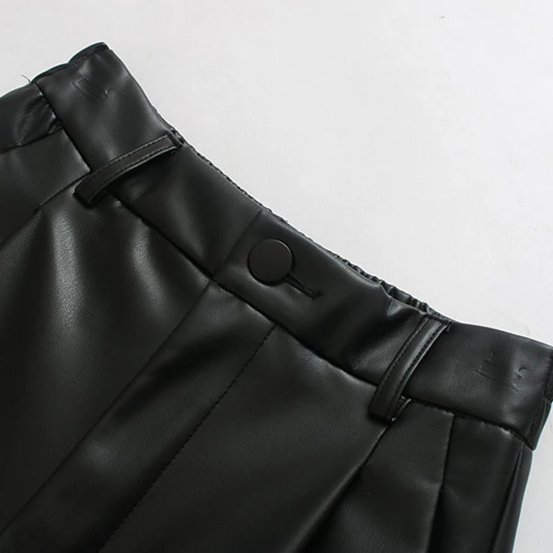 Женские брюки из искусственной кожи Wixra, классические свободные однотонные уличные брюки из искусственной кожи с высокой эластичной талией, новая модная одежда на осень и весну