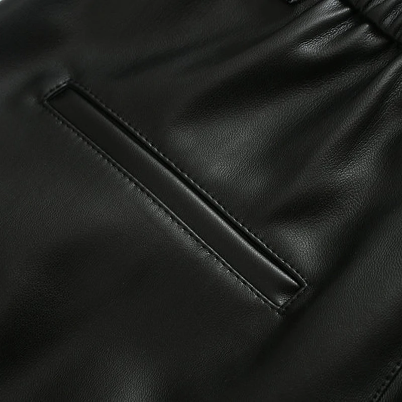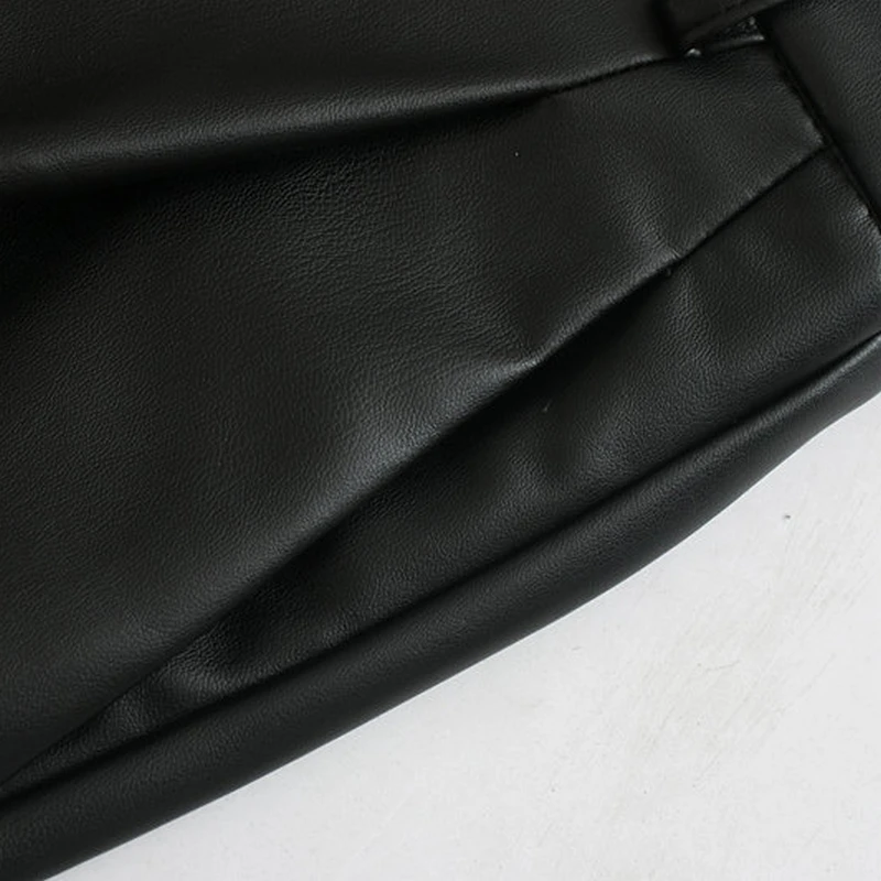 Брюки женские из искусственной кожи, с высокой талией, черные, Осен...