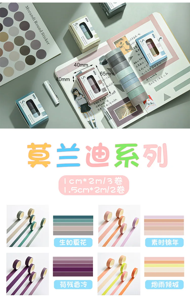 5 рулонов Morandi набор декоративного скотча Васи японский маскирую...