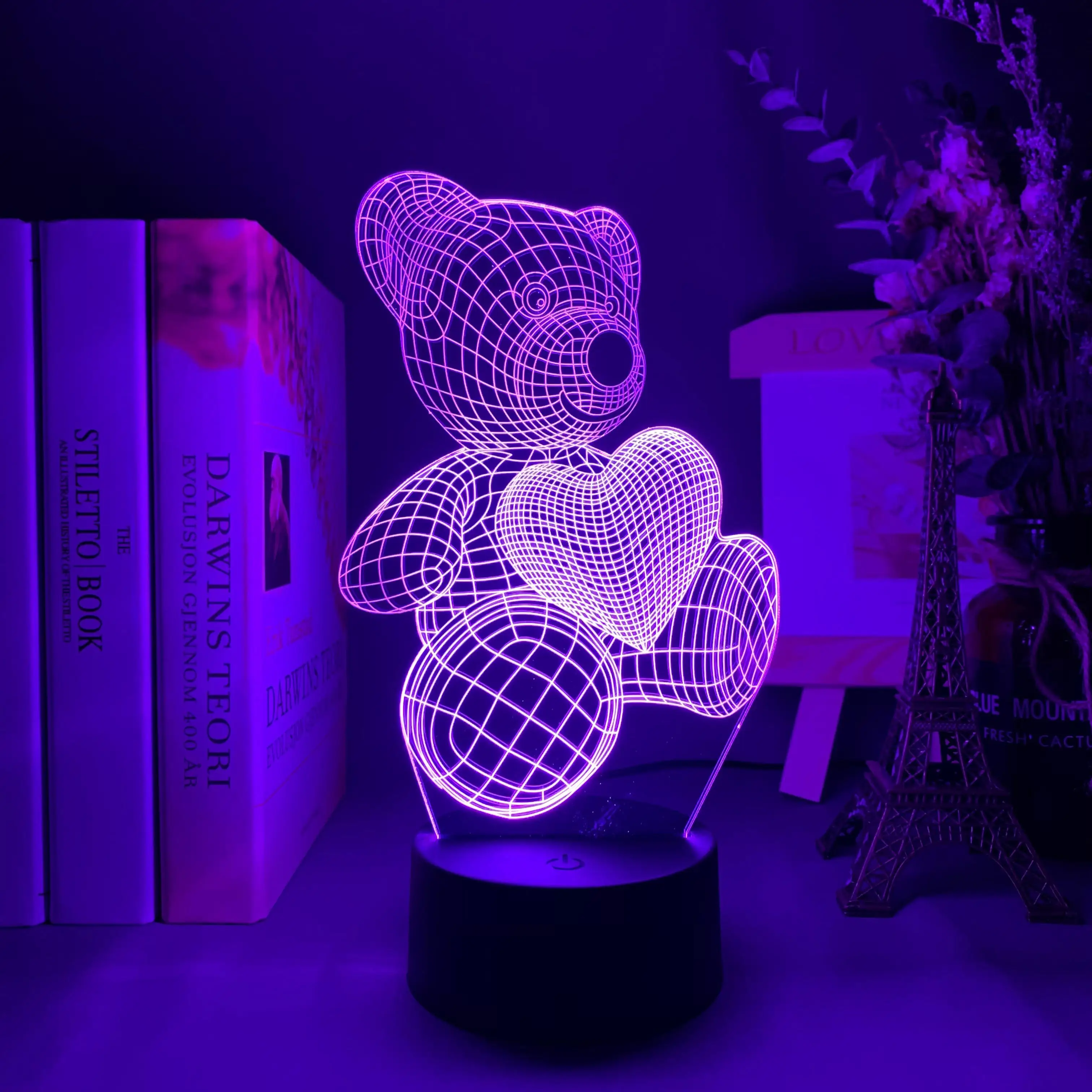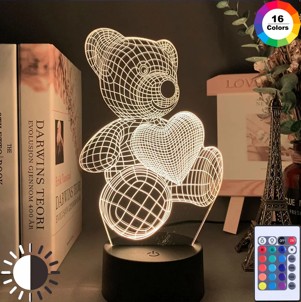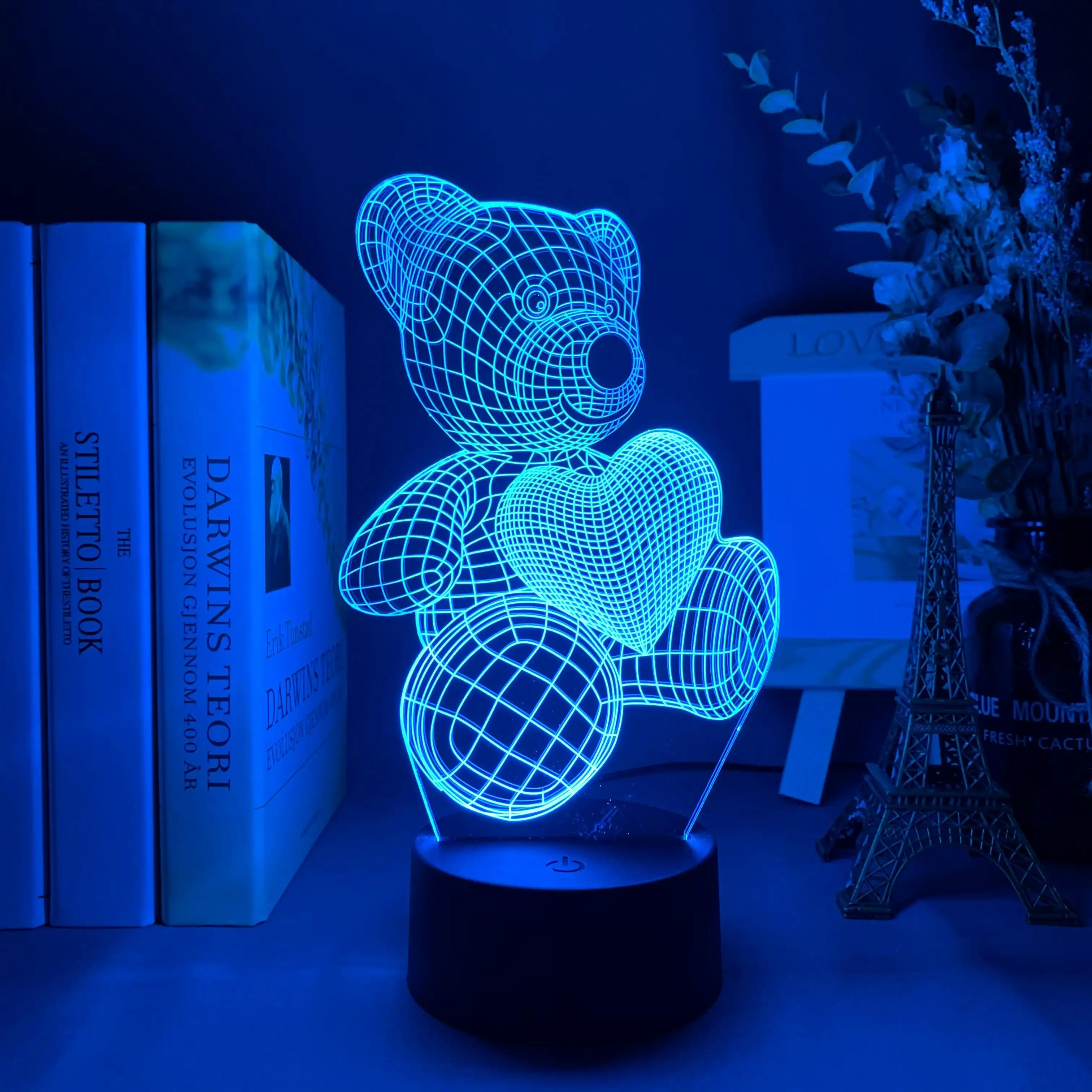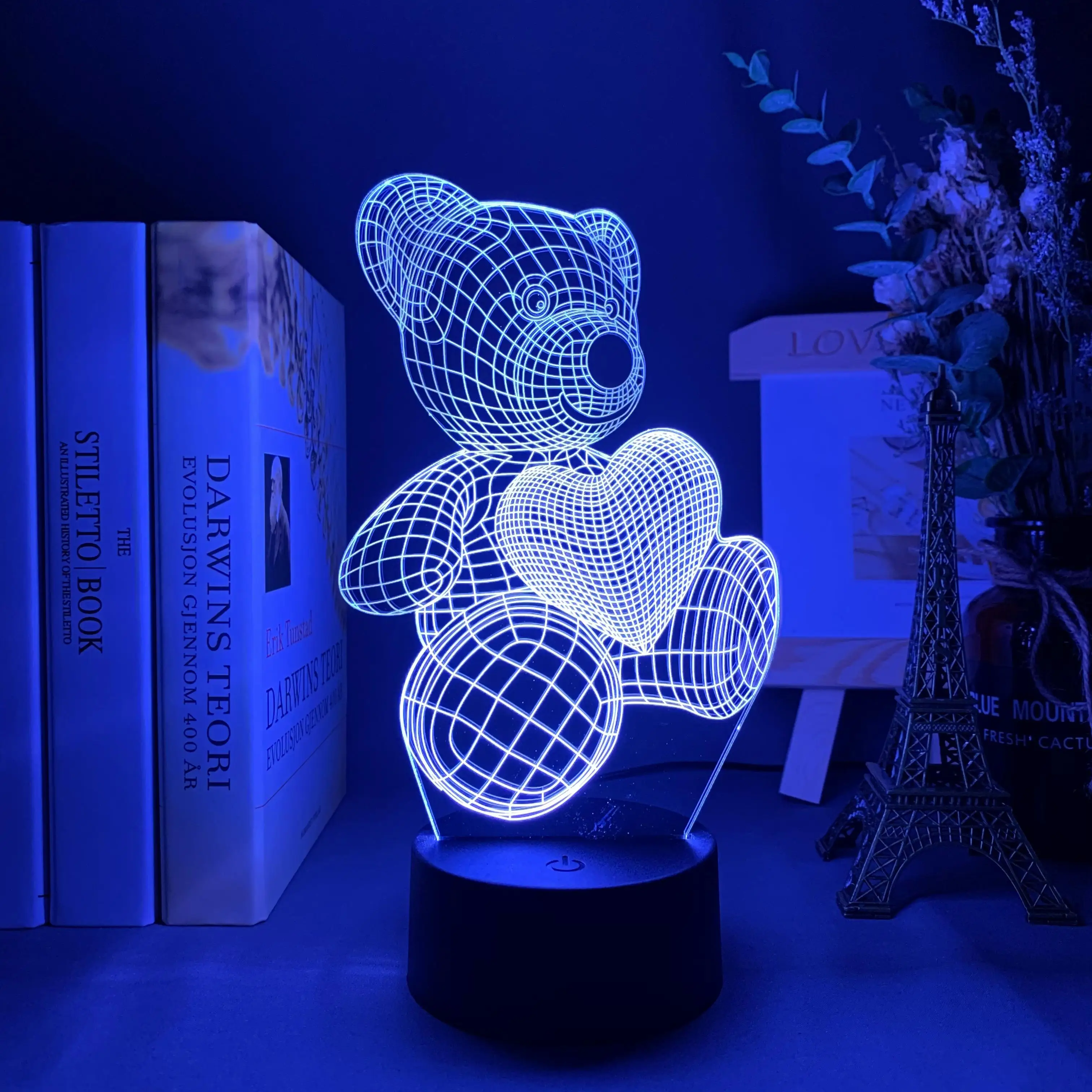 3D иллюзия детский ночник медведь с сердцем светодиодный сенсорный переключатель красочная атмосфера для украшения дома светильник Настольная лампа прикроватный