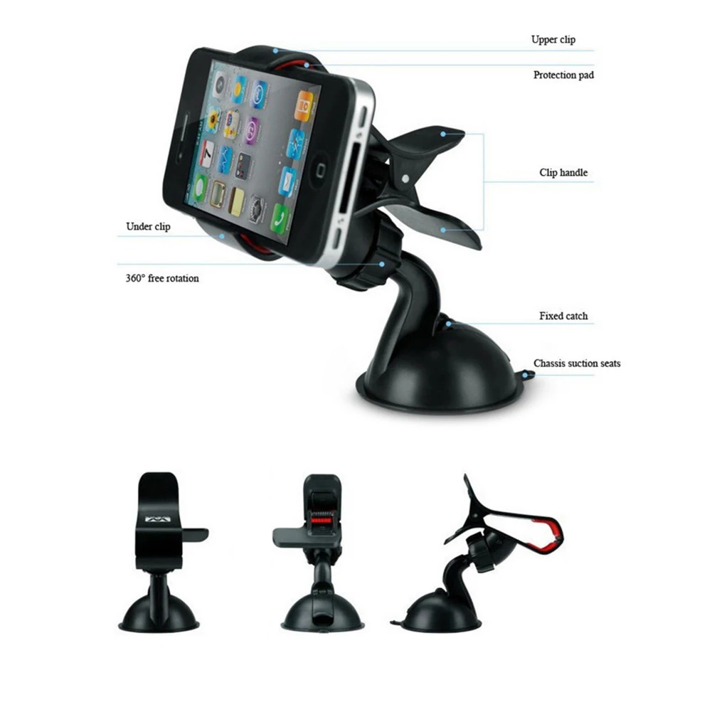 Универсальный держатель на присоске для телефона, с креплением на лобовое стекло и приборную панель автомобиля, 360 градусов