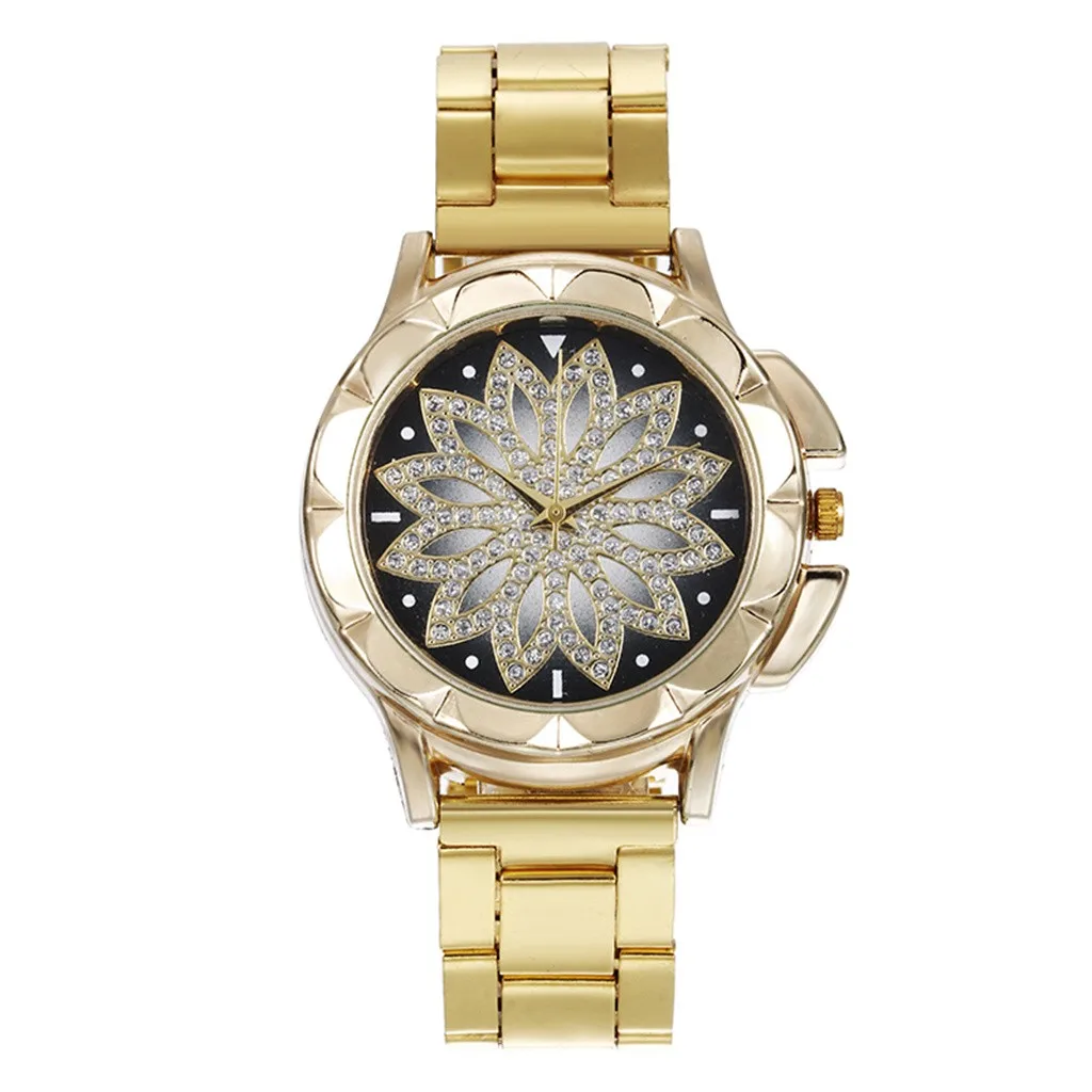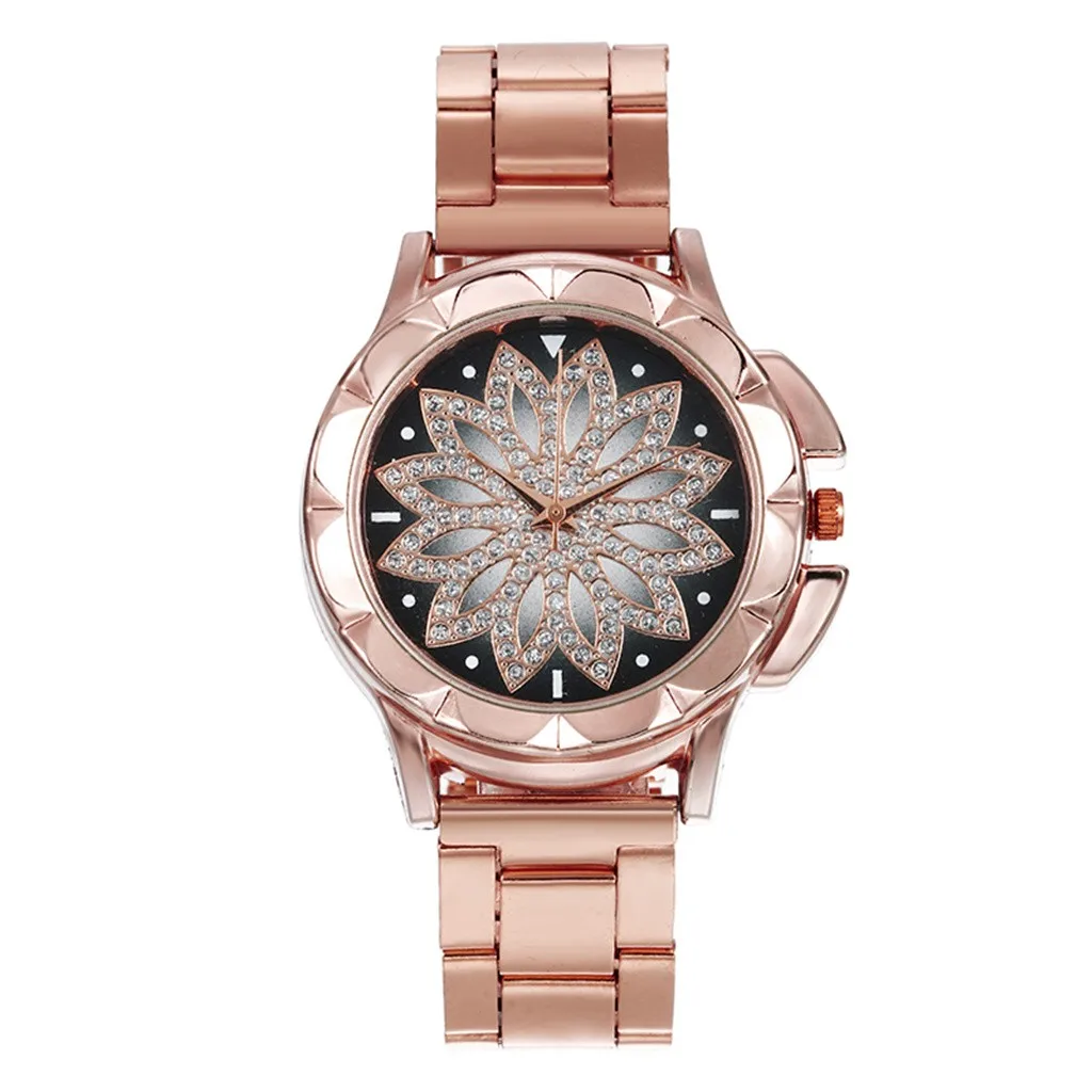 Часы наручные женские кварцевые, элегантные роскошные светящиеся с браслетом из нержавеющей стали