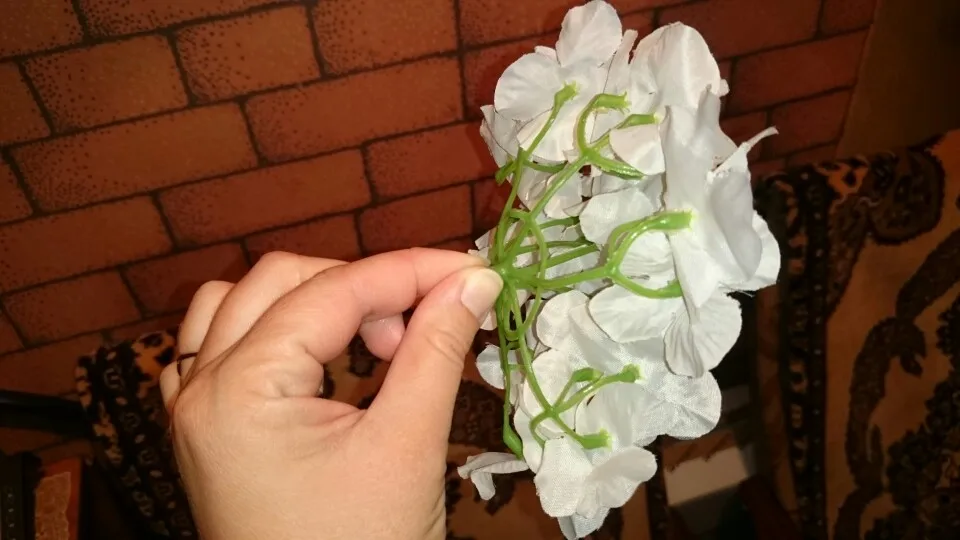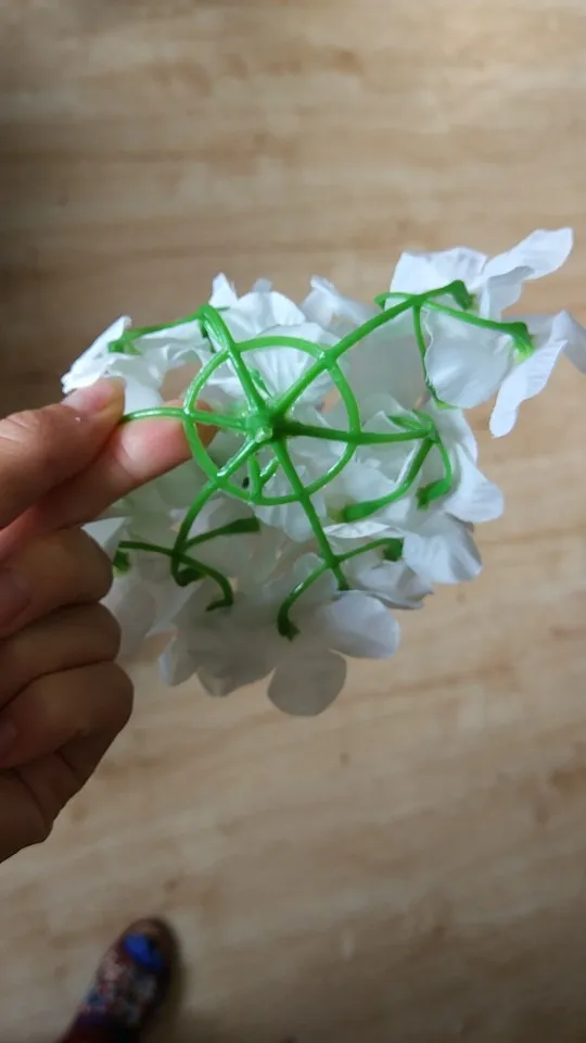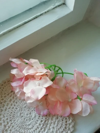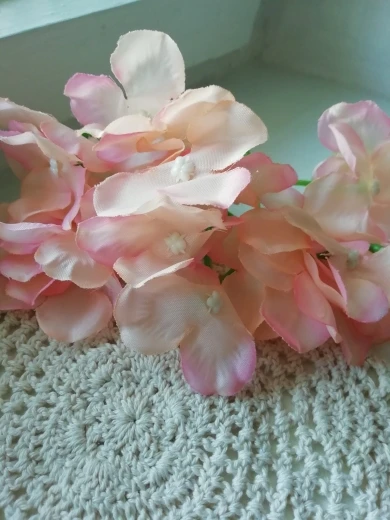 Выиграла товар за 0.30 коп и монеты. 9 мая товар отправили - 2 июня доставили на Укр почту. Цветок без стебля. Расправил каждую веточку и получилась объёмная гортензия. Я сначала подумала, что это аксессуар для волос. Большле спасибо продавцу.
