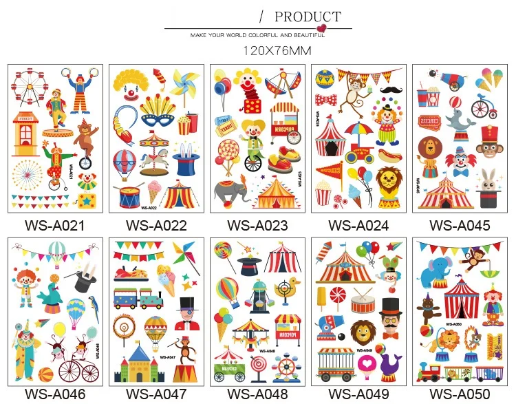 10 видов цирковых трупов татуировки водонепроницаемые одноразовые наклейки для макияжа лица счастливая палатка клоуна акробатика воздушный шар Временное Тело искусство