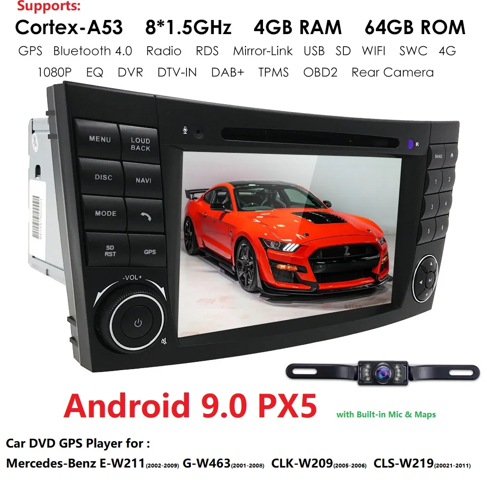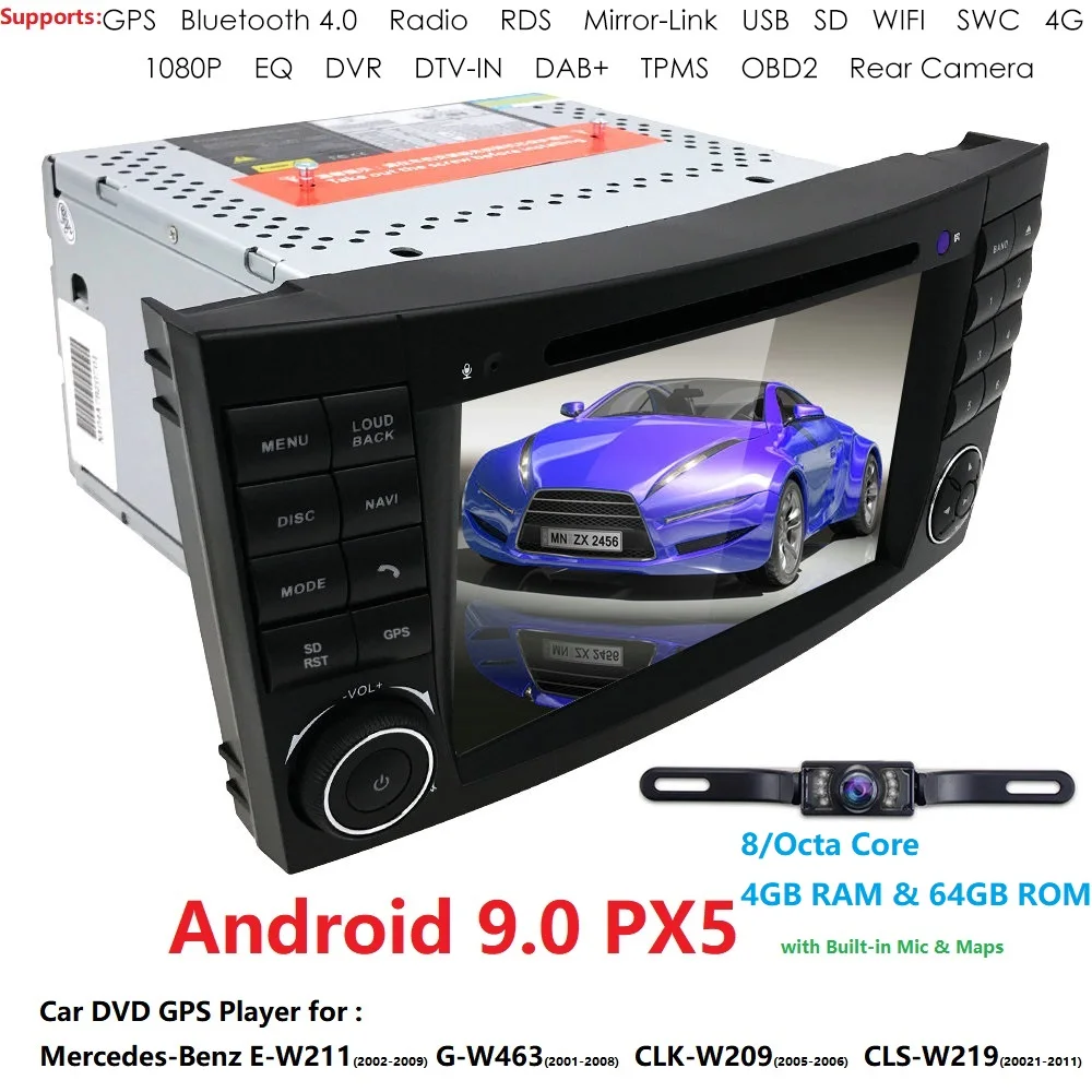 PX5 7 "2 DIN Android 9,0 автомобильный навигатор для Mercedes Benz G/почтовой службой E-класс W211 E200/220/300/550,W463,W209,W219,SWC,Bluetooth, беспроводной доступ в Интернет, OBD2