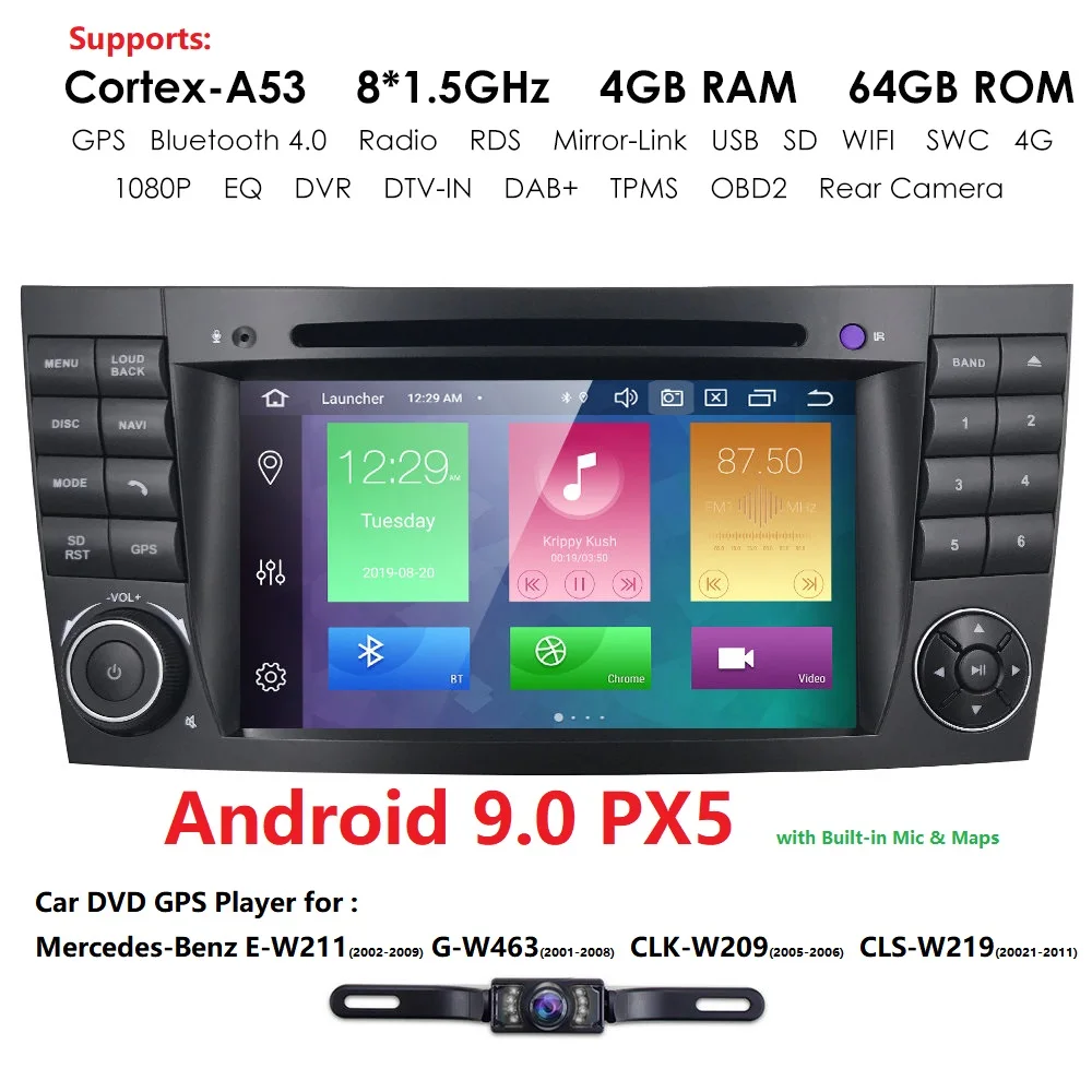 Автомобильная навигация PX5 7 "2 DIN Android 9,0 для Mercedes Benz GE-Class W211 E200220300550,W463,W209,W219,SWC,Bluetooth, Wi-Fi, OBD2