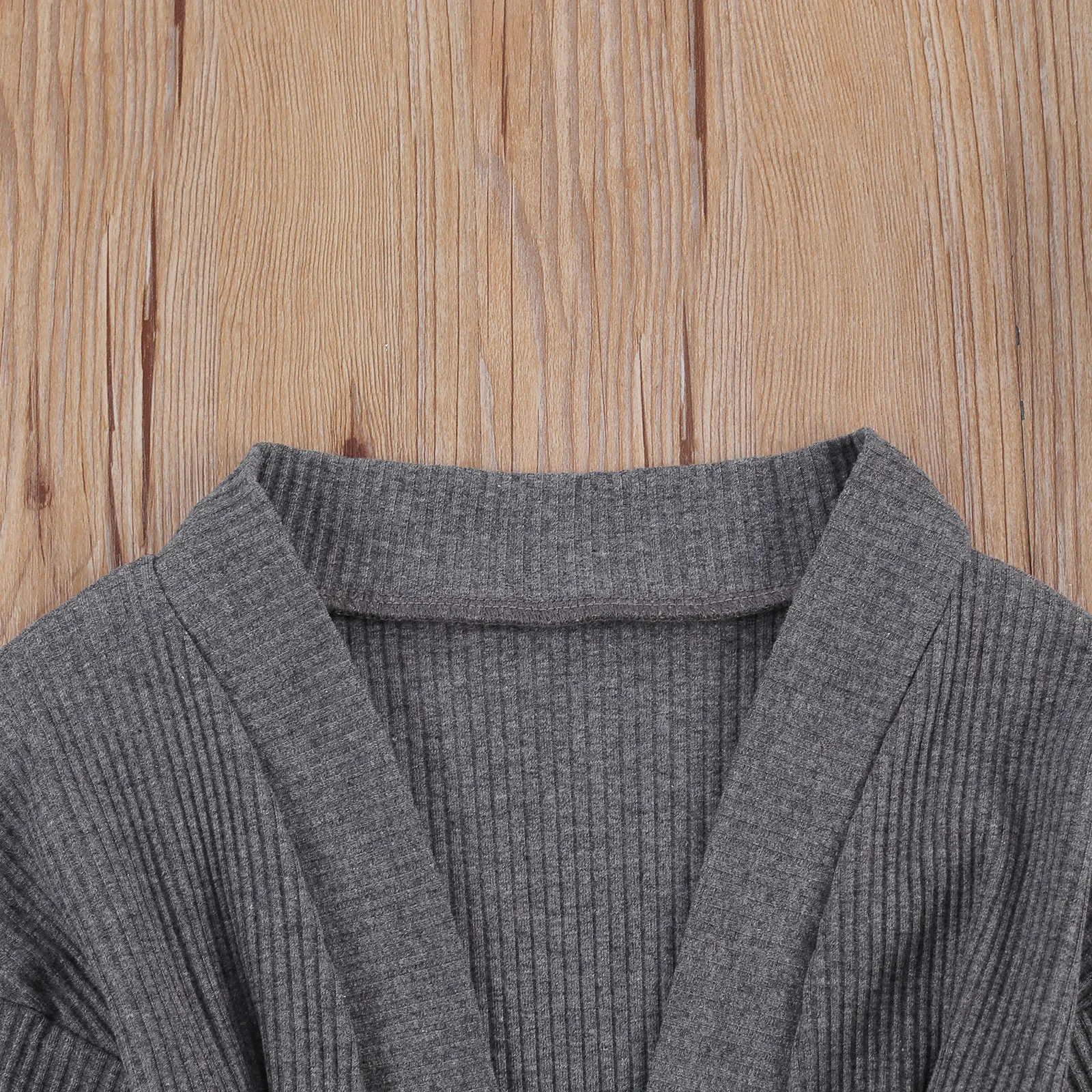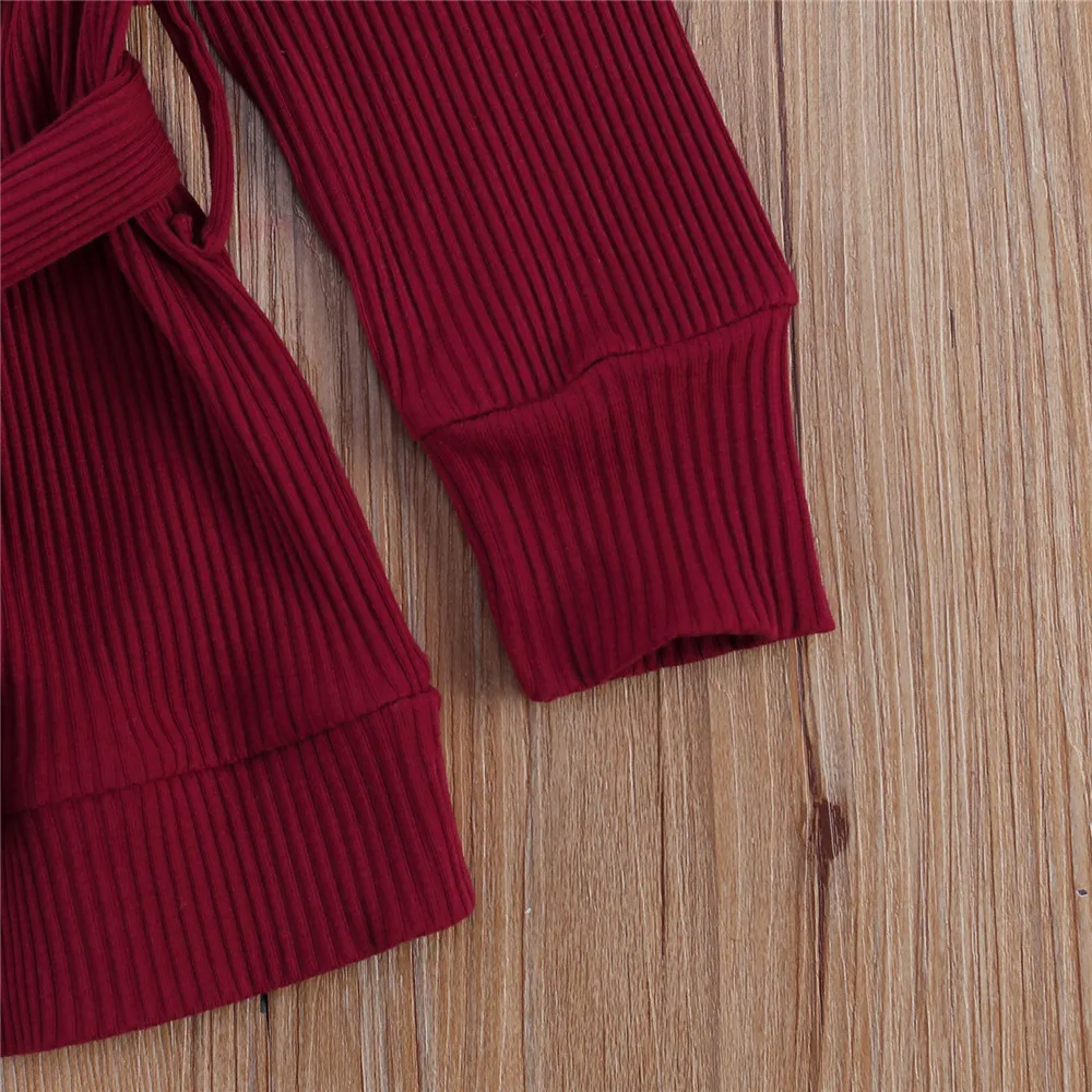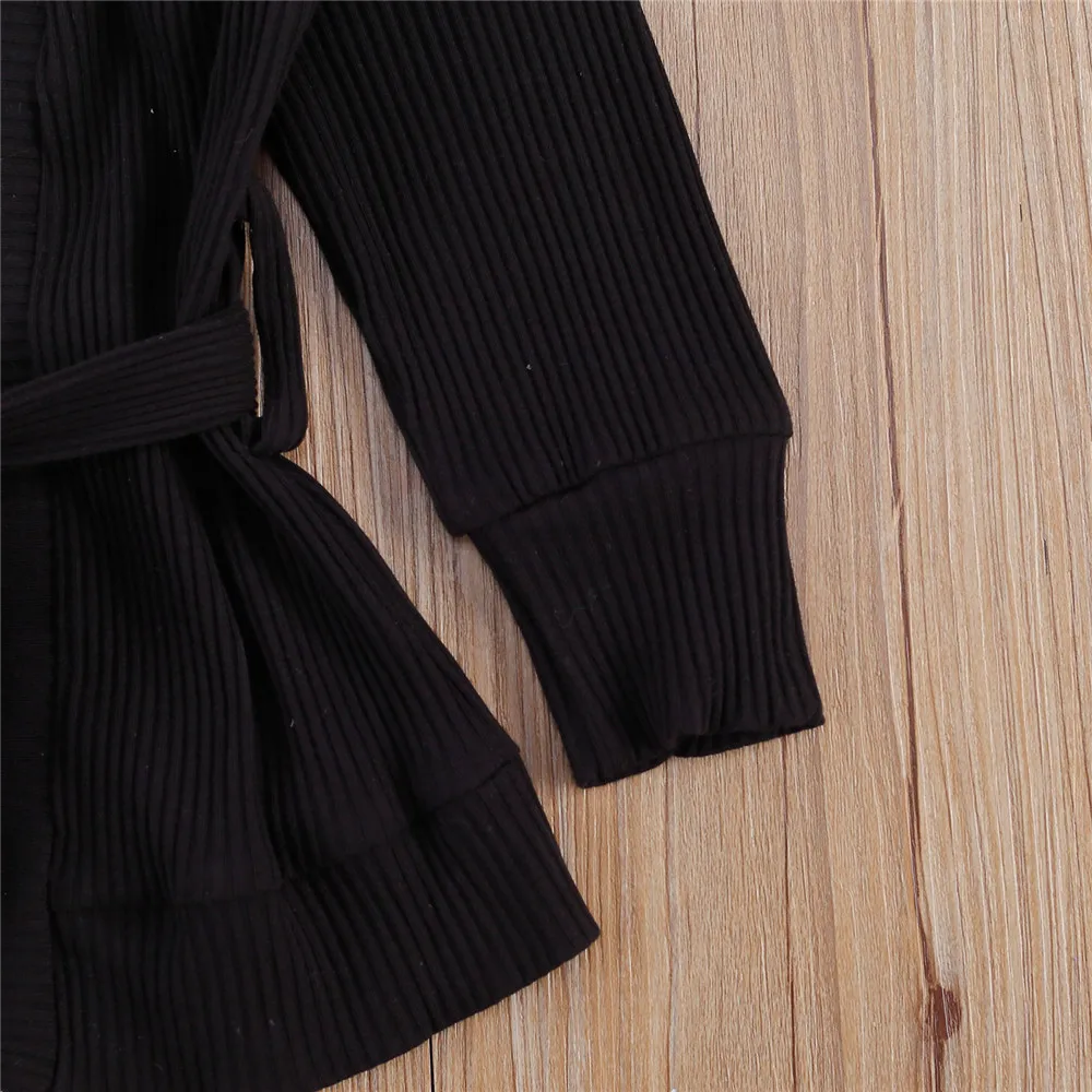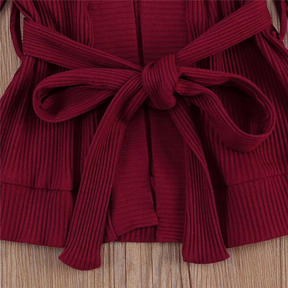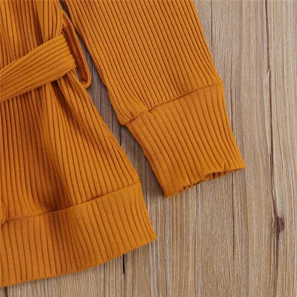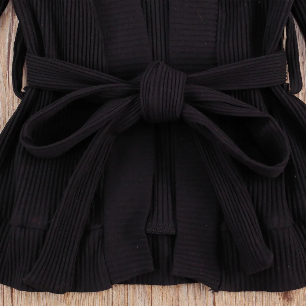 Осень 2020, Классические кардиганы для маленьких девочек, пальто с открытыми плечами и длинным рукавом, вязаный свитер из чесаного хлопка с поясом и шнуровкой на талии